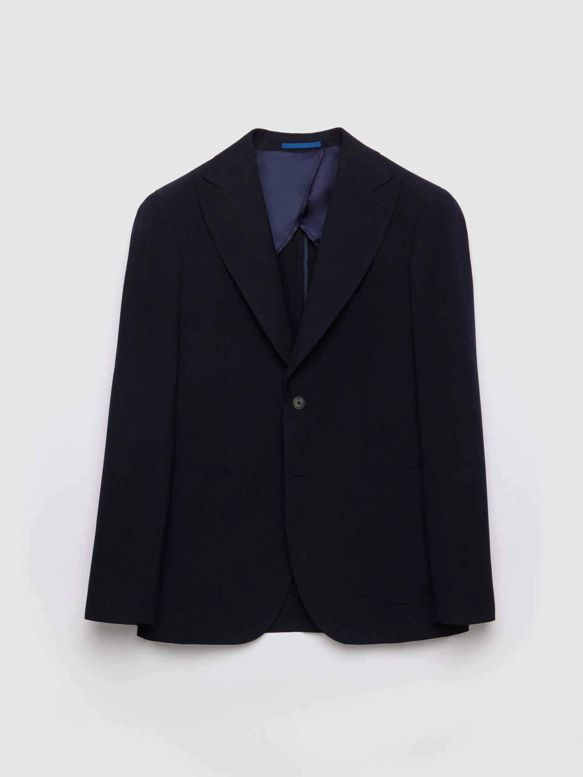 Americana con un corte más relajado y con cuello y solapa ligeramente más ancha de estilo punta de lanza. Cierre central simple, bolsillo a la altura del pecho, tres bolsillos de solapa en la cintura con una leve inclinación y puños con terminación de botones. Interior forrado y con bolsillos.