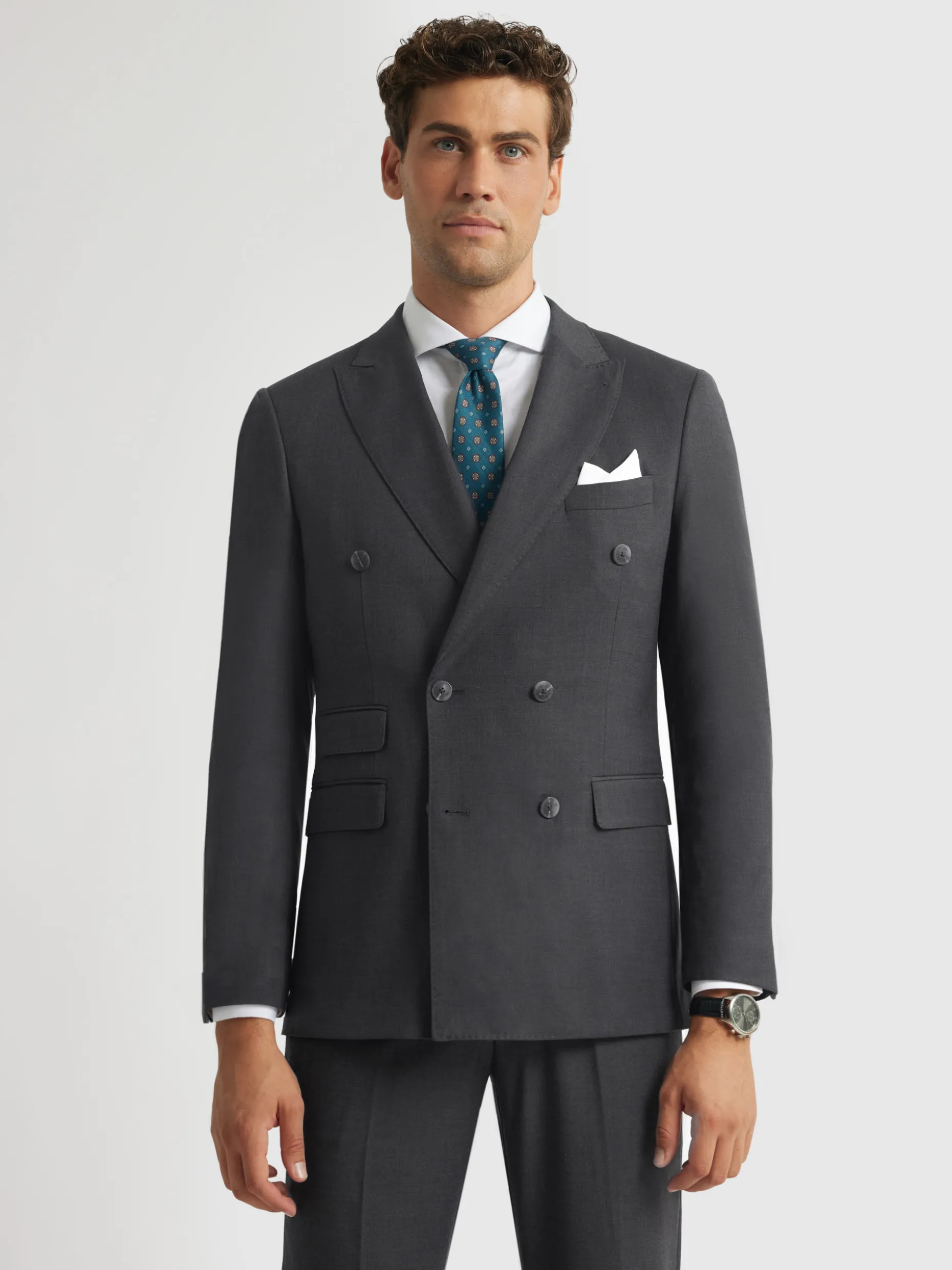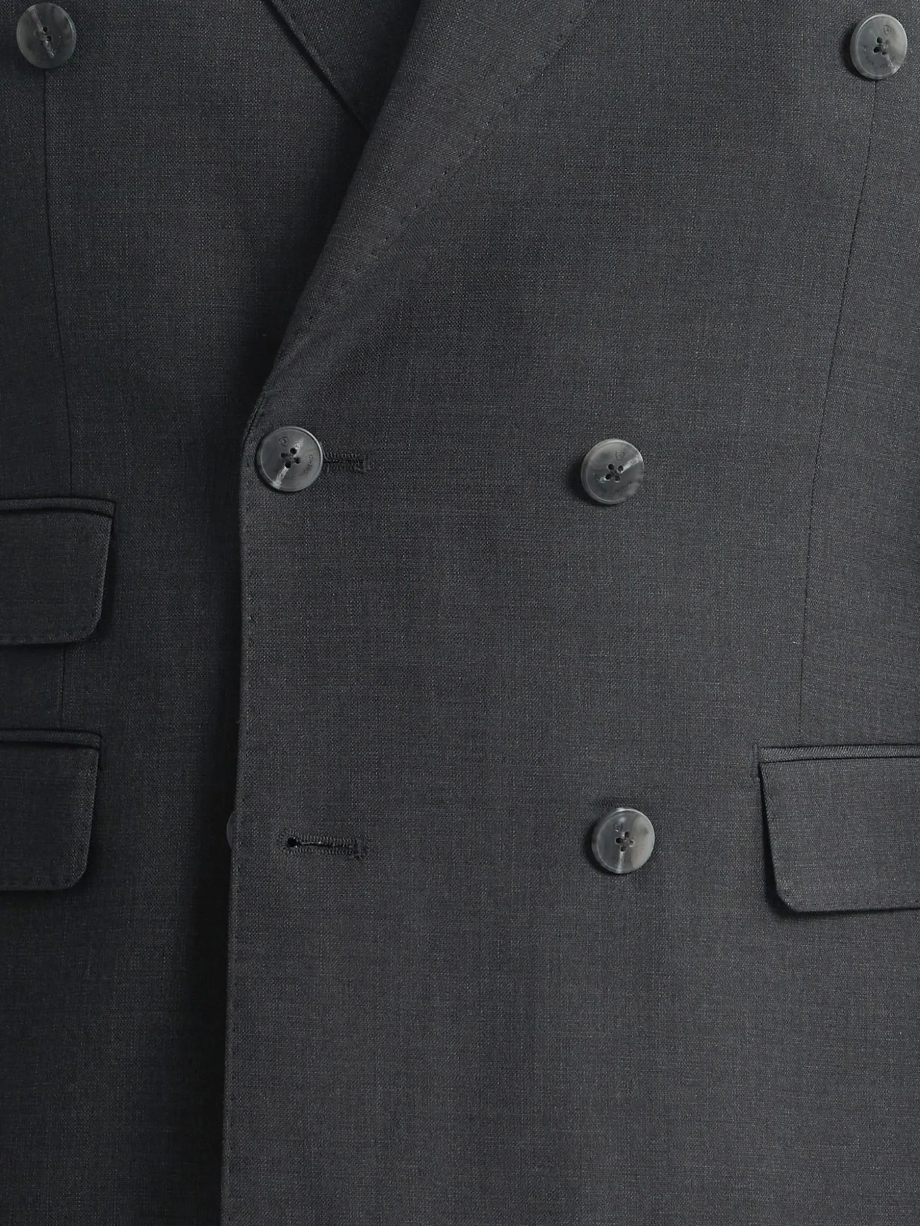 Americana con tejido fi fil de cierre central cruzado y con cuello y solapa. Bolsillo de ojal en el pecho, tres bolsillos de solapa en la cintura y puños con botones en su terminación. Pinzas en el delantero. Interior forrado y con bolsillos.