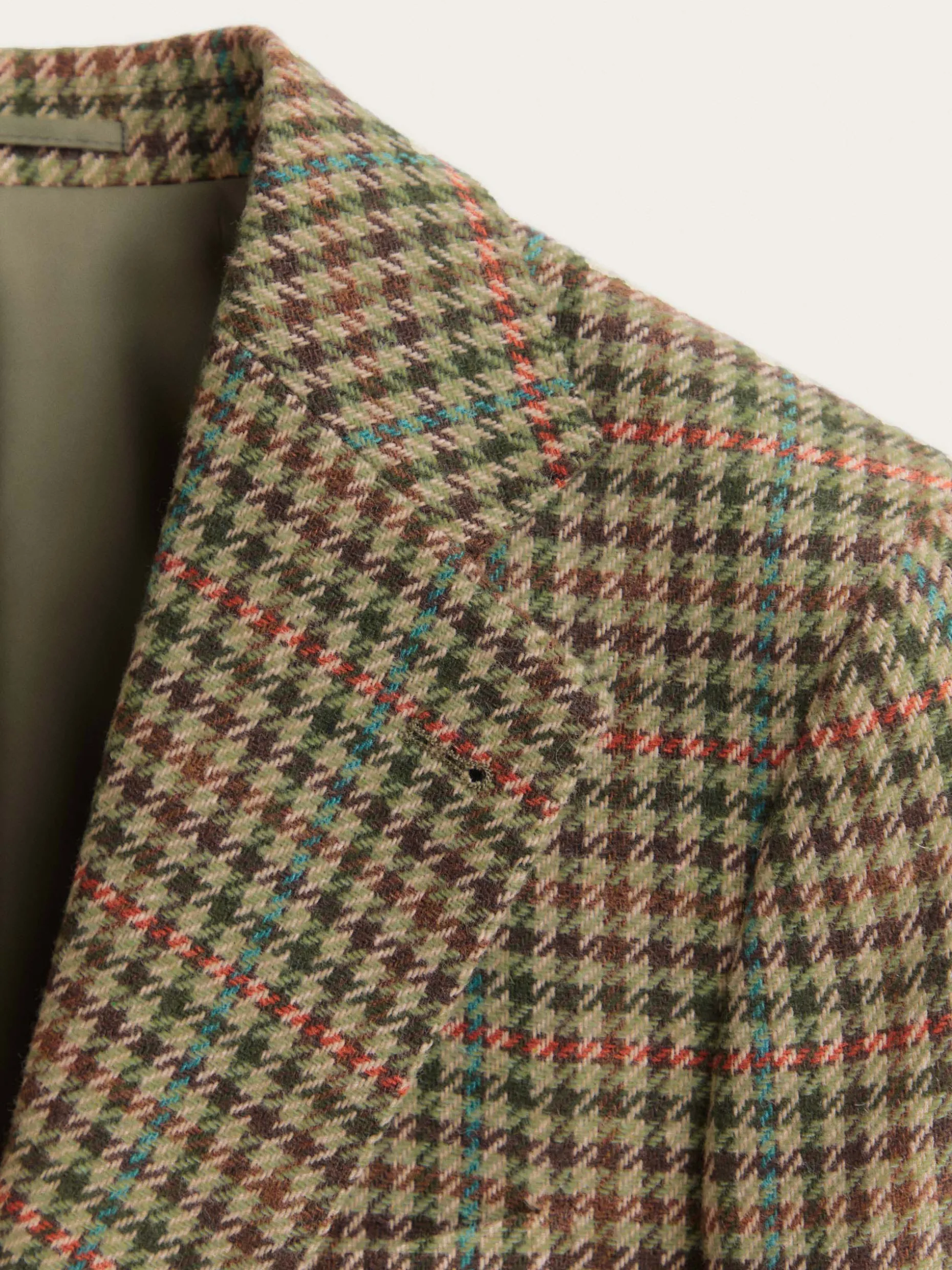 Americana confeccionada en tejido a cuadros de corte slim fit. Cuenta con cuello y solapa, cierre central simple mediante dos botones y puños con botones decorativos. Pinzas en el frontal, tres bolsillos de solapa en la cintura y un bolsillo a la altura del pecho. Interior forrado con dos bolsillos.