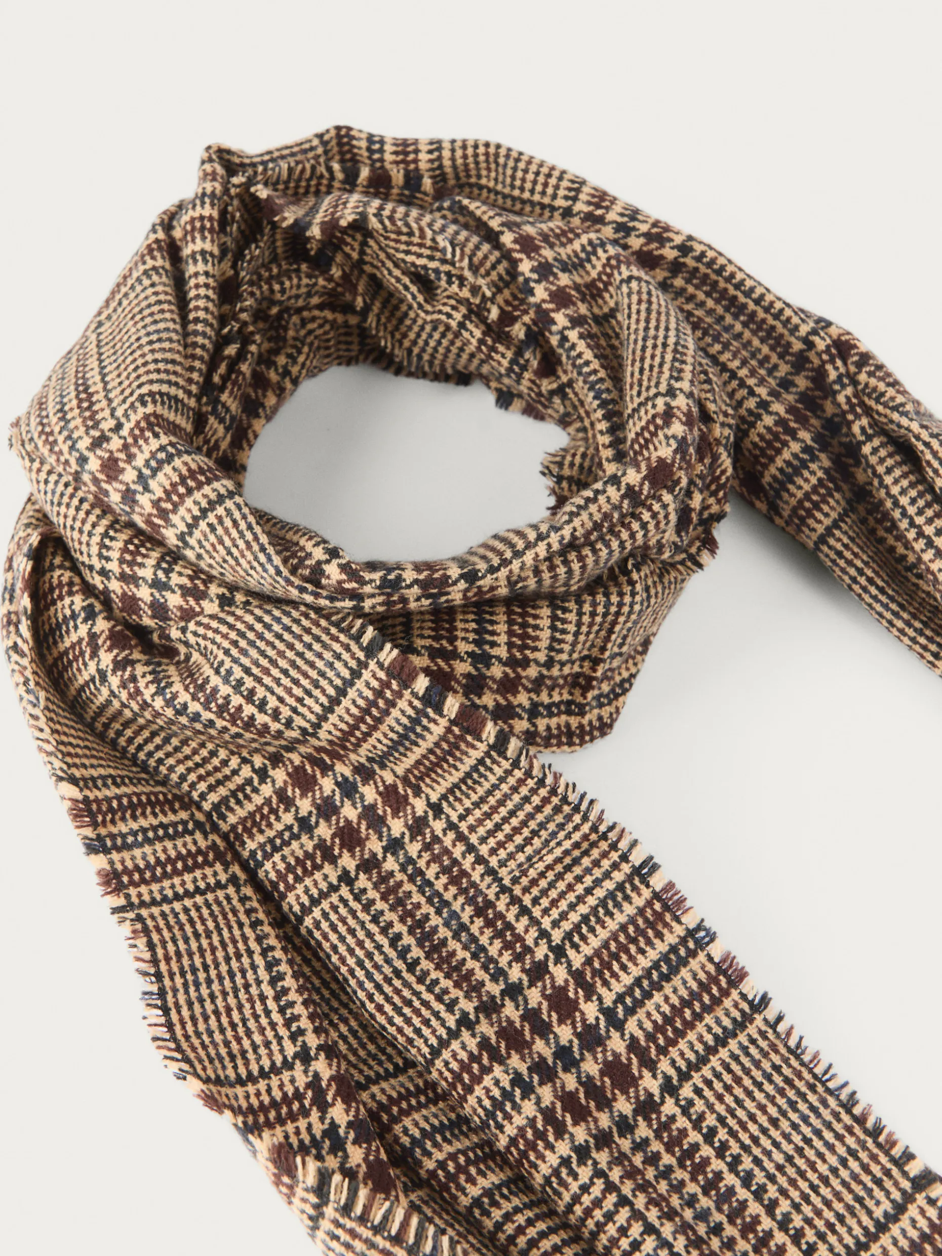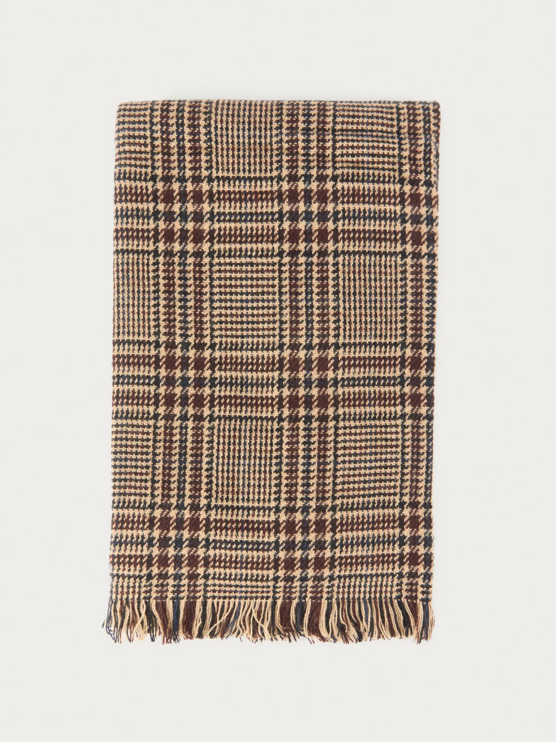 Bufandas con diseño de cuadros confeccionada en 100% acrílico. Terminación de flecos decorativos y tacto suave.