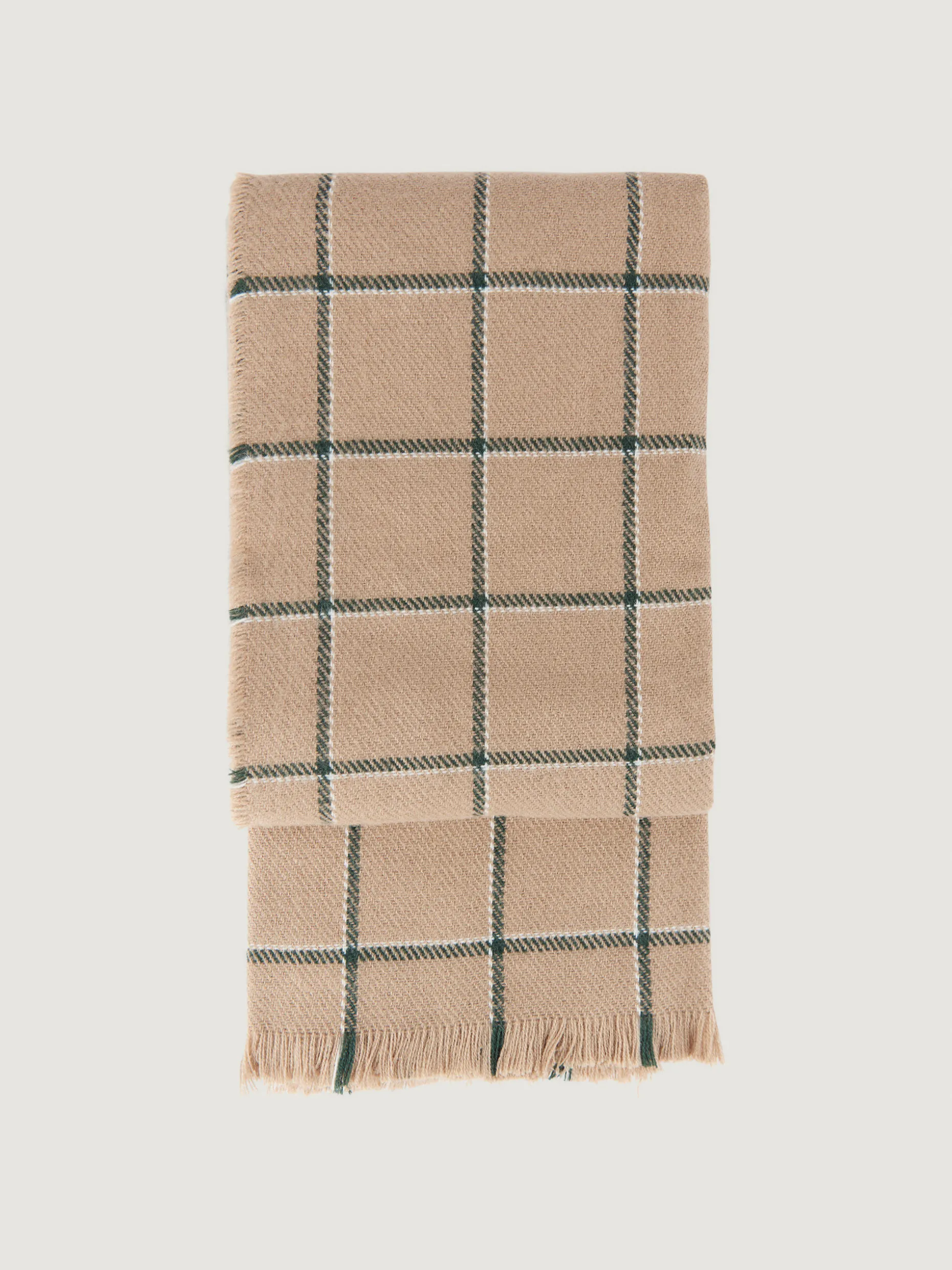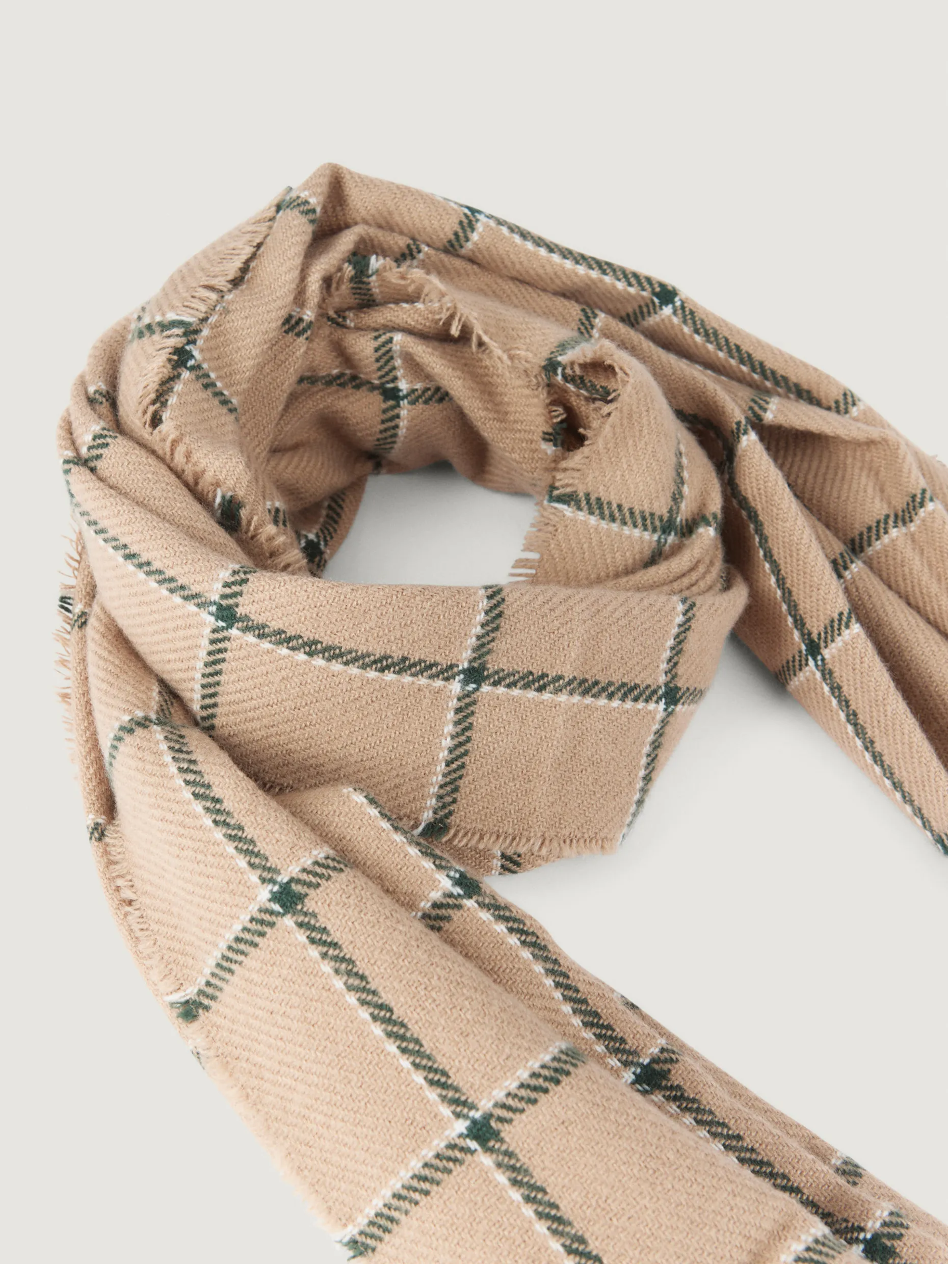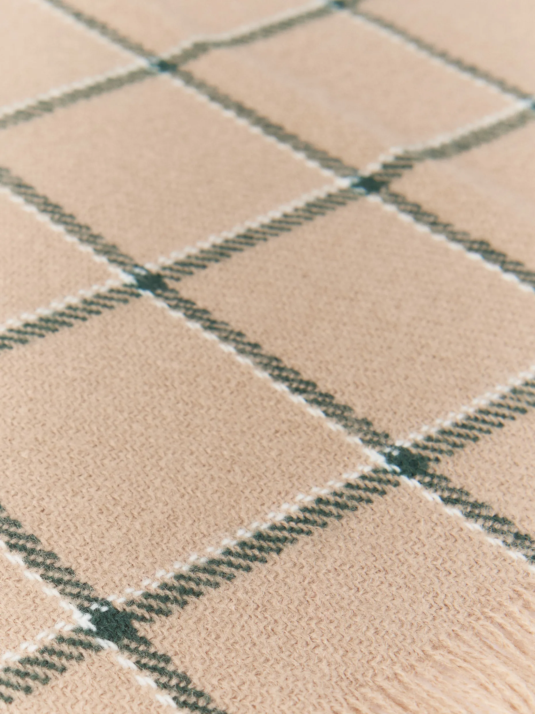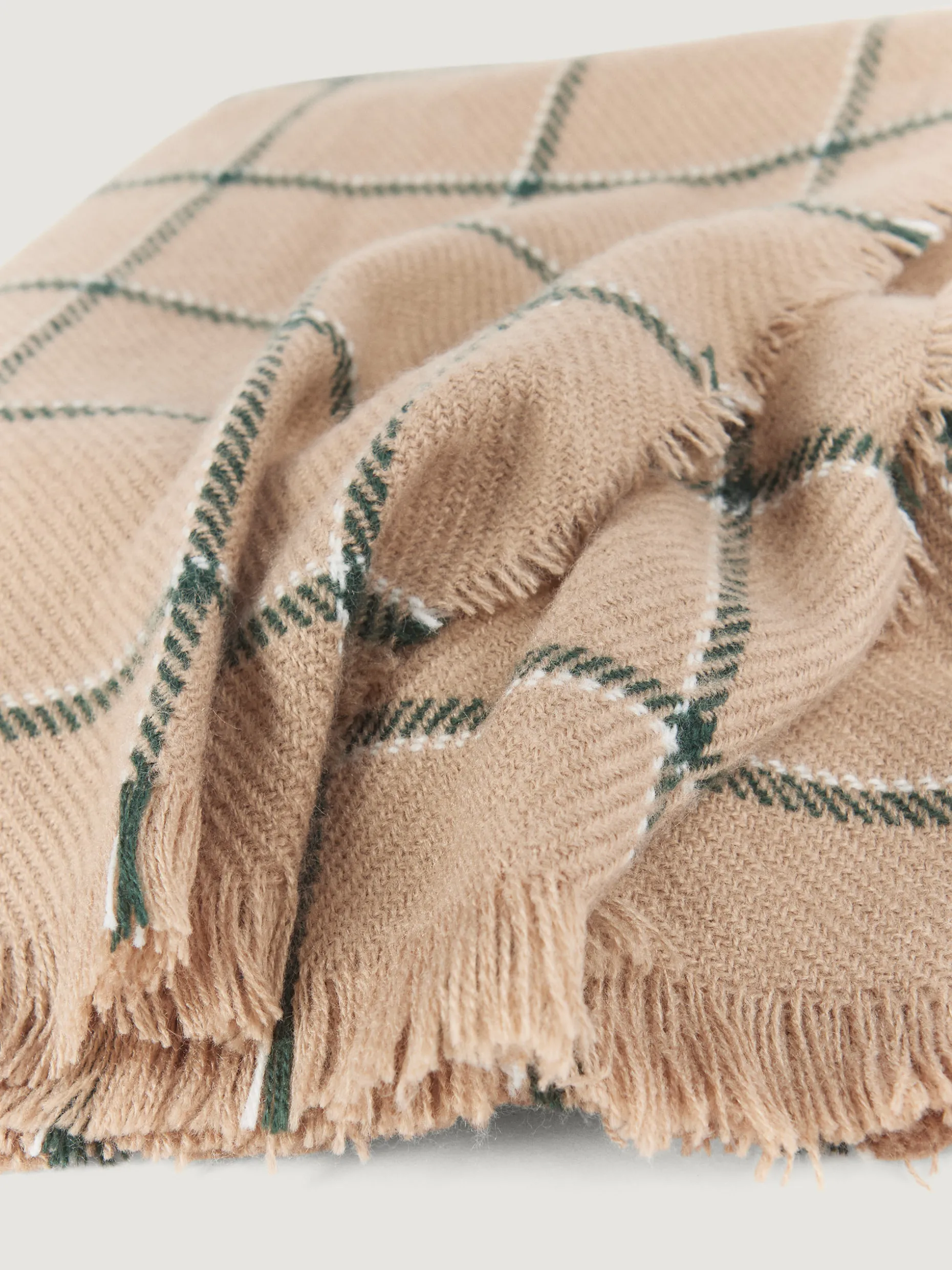 Bufandas con diseño de cuadros confeccionada en 100% acrílico. Terminación de flecos decorativos y tacto suave.