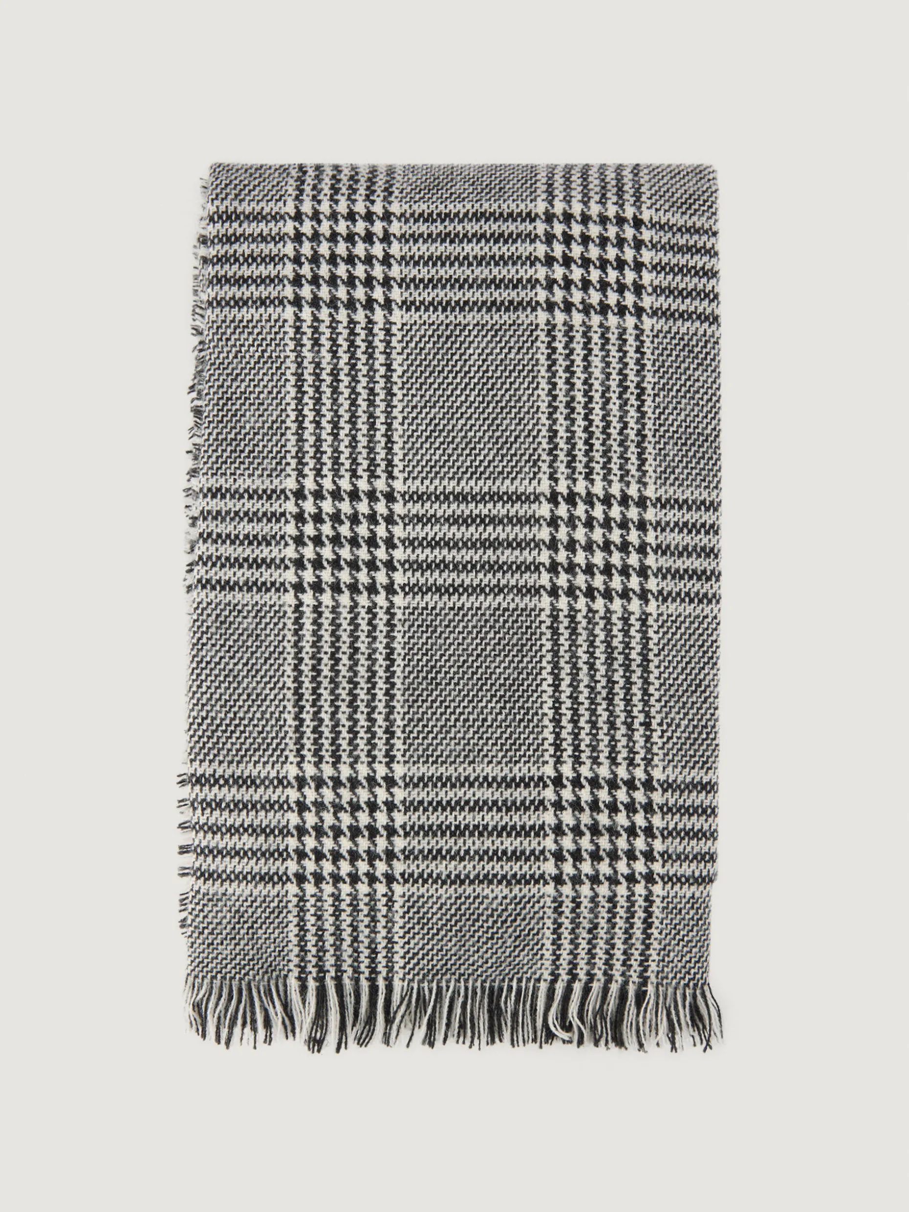 Bufandas con diseño de cuadros confeccionada en 100% acrílico. Terminación de flecos decorativos y tacto suave.