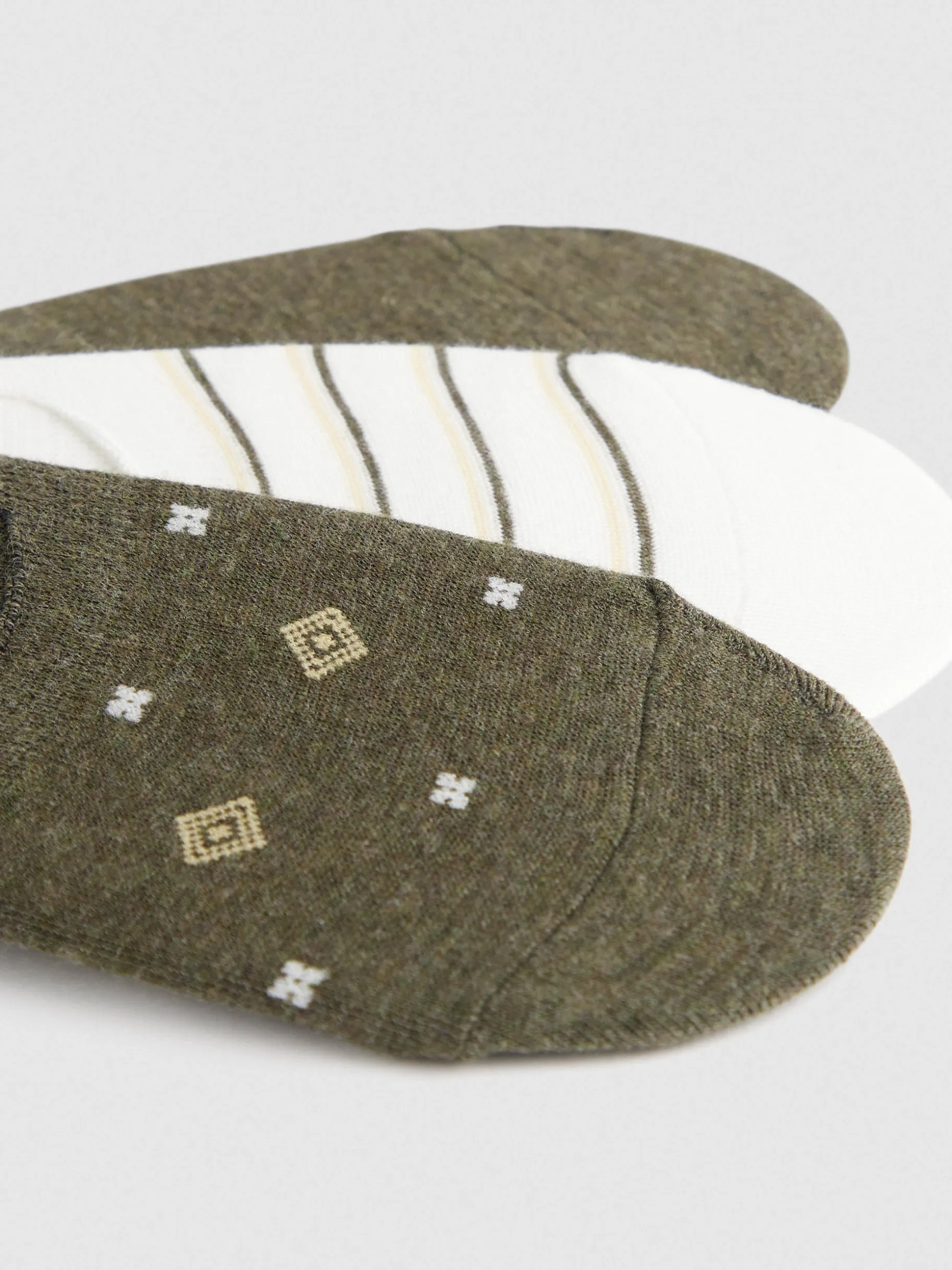Pack de tres pares de calcetines estilo pinkys con diseños personalizados. Acabado en rib para un ajuste perfecto.
