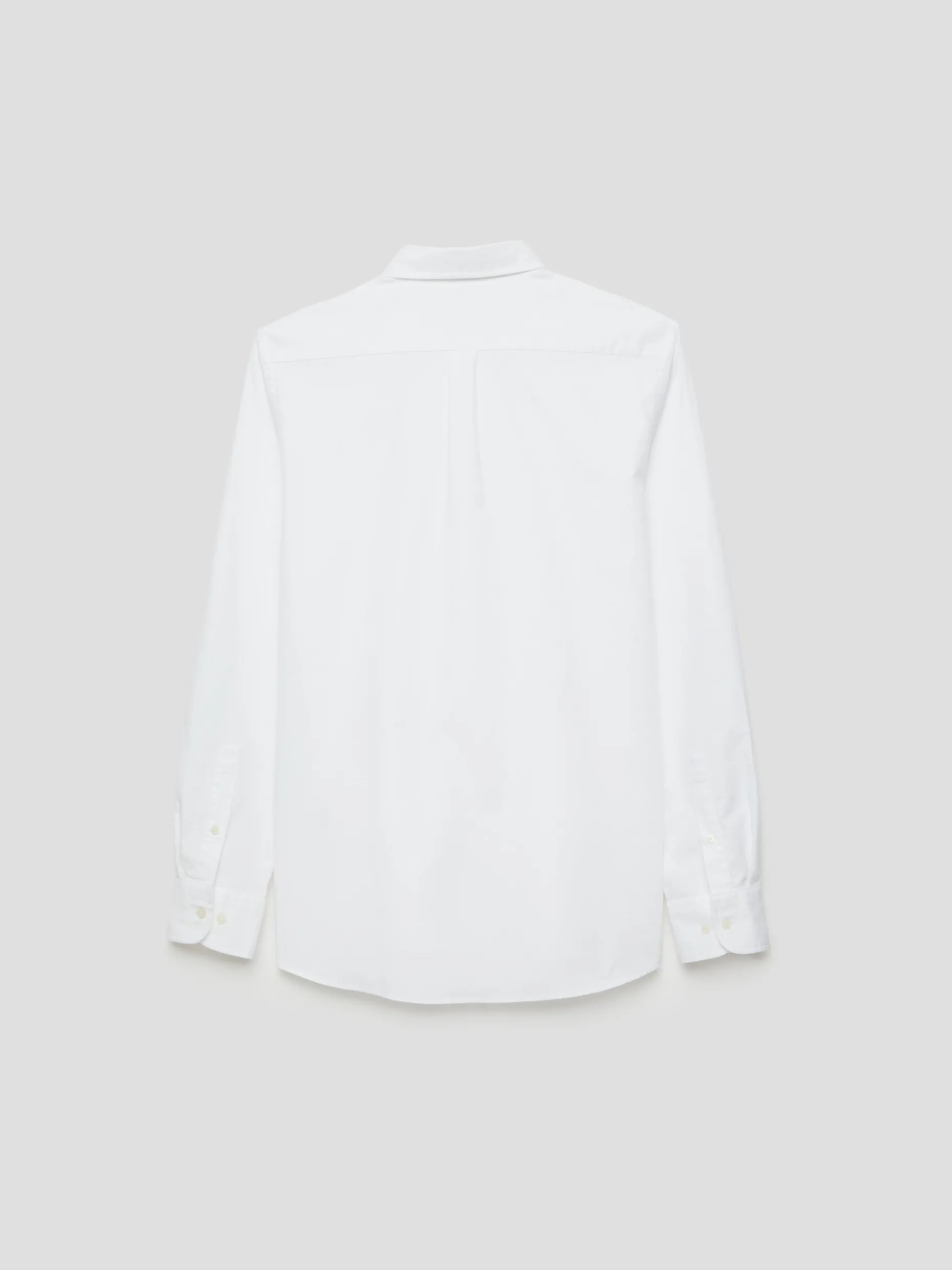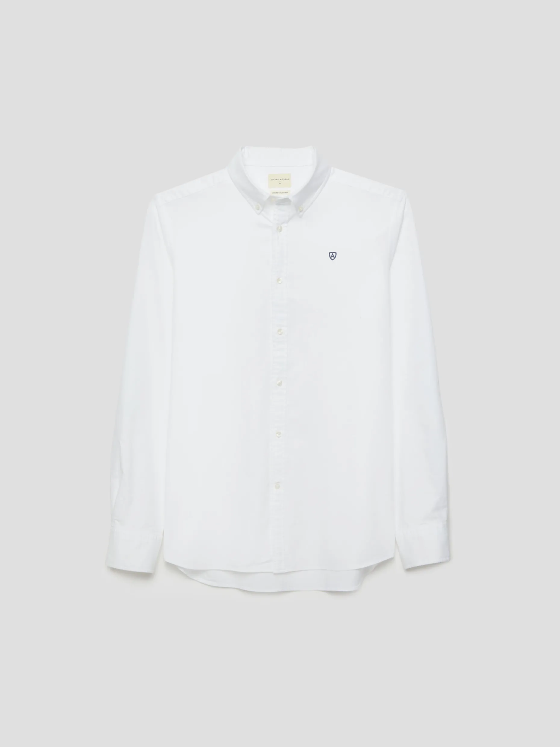 Camisa de estilo lisa y corte regular fit confeccionada en 100% algodón. Cuenta con cuello botón, manga larga con puños simples y logo de la marca grabado en el frontal a contraste.