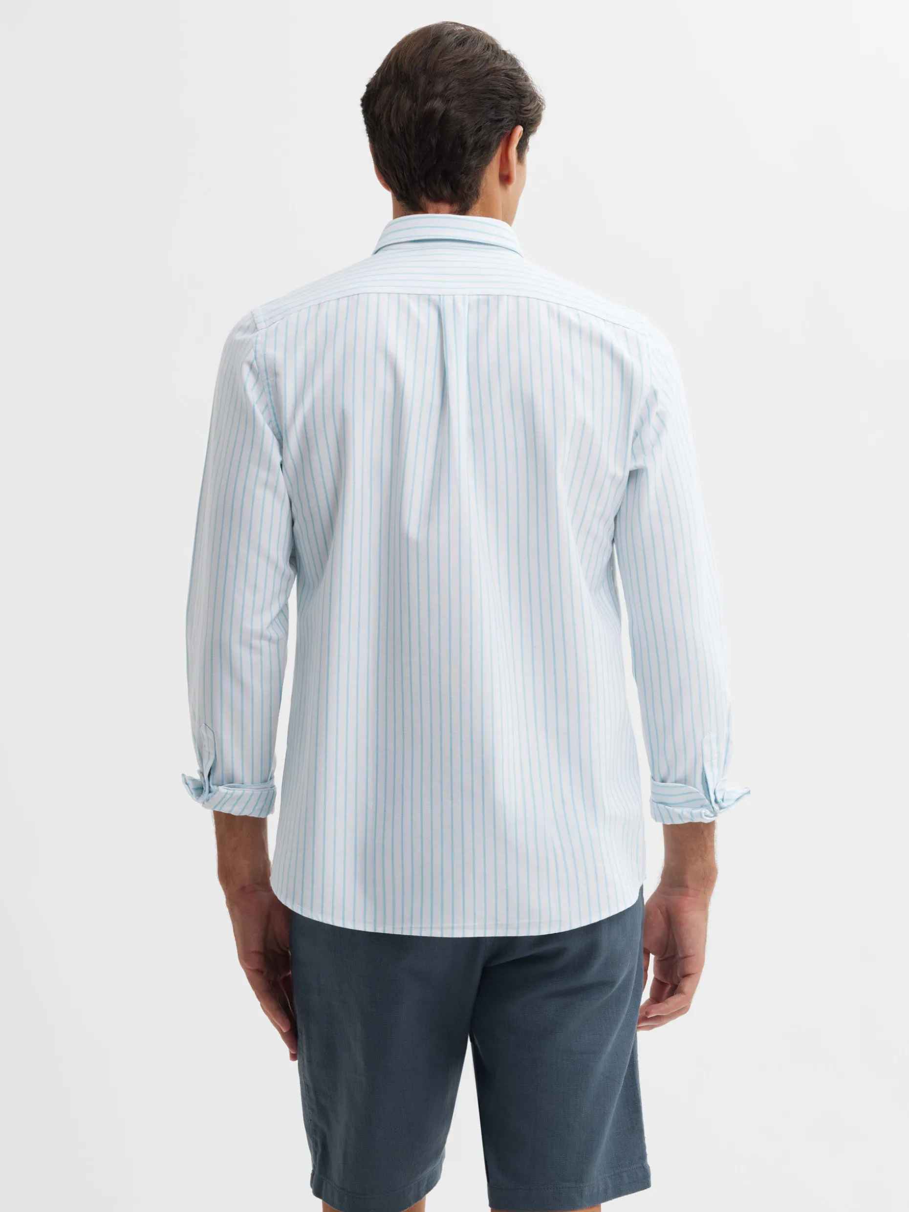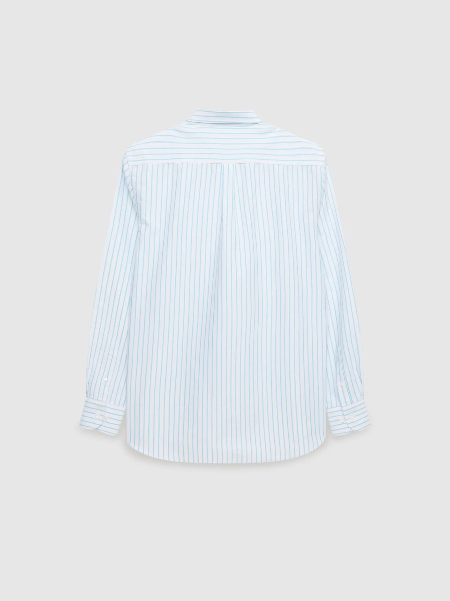 Camisa estilo a rayas confeccionada en algodón. Cuenta con cuello botón, manga larga de puños simples y logo grabado al tono en el frontal. Corte regular fit.