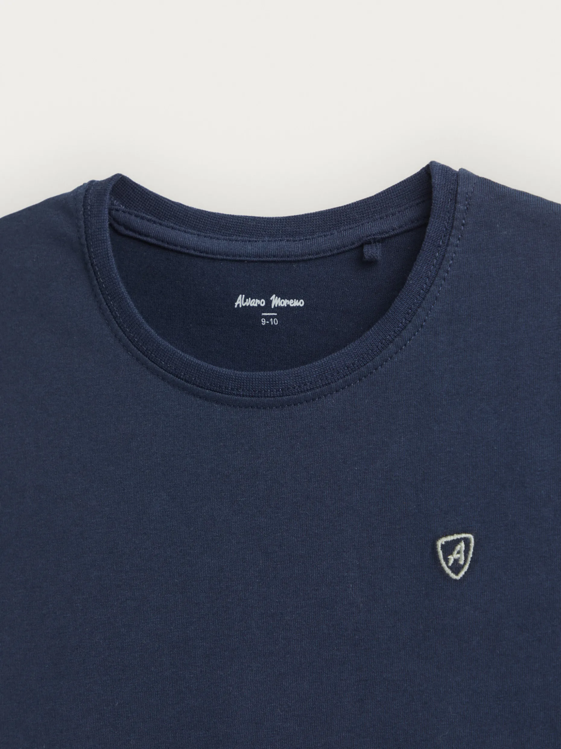 Camiseta lisa confeccionada en algodón con cuello redondo, manga corta y logo de la marca grabado en el frontal. Etiqueta canvas en el lateral. Corte regular fit.