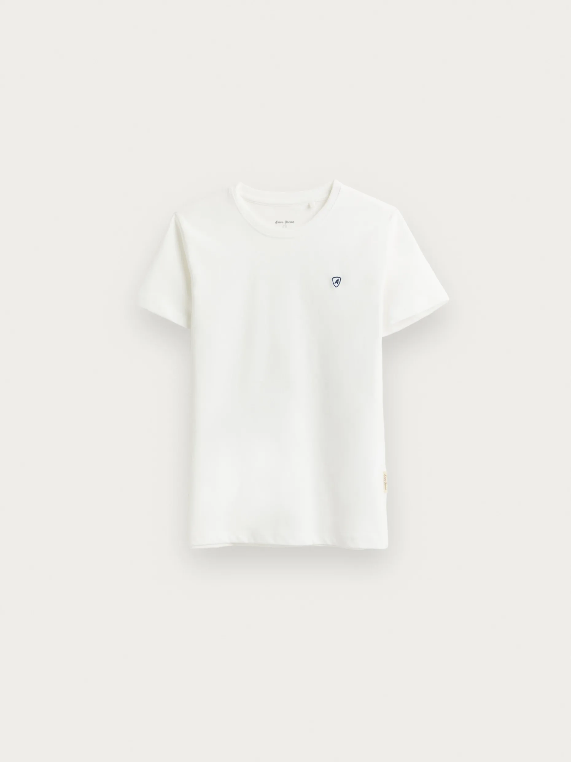 Camiseta lisa confeccionada en algodón con cuello redondo, manga corta y logo de la marca grabado en el frontal. Etiqueta canvas en el lateral. Corte regular fit.