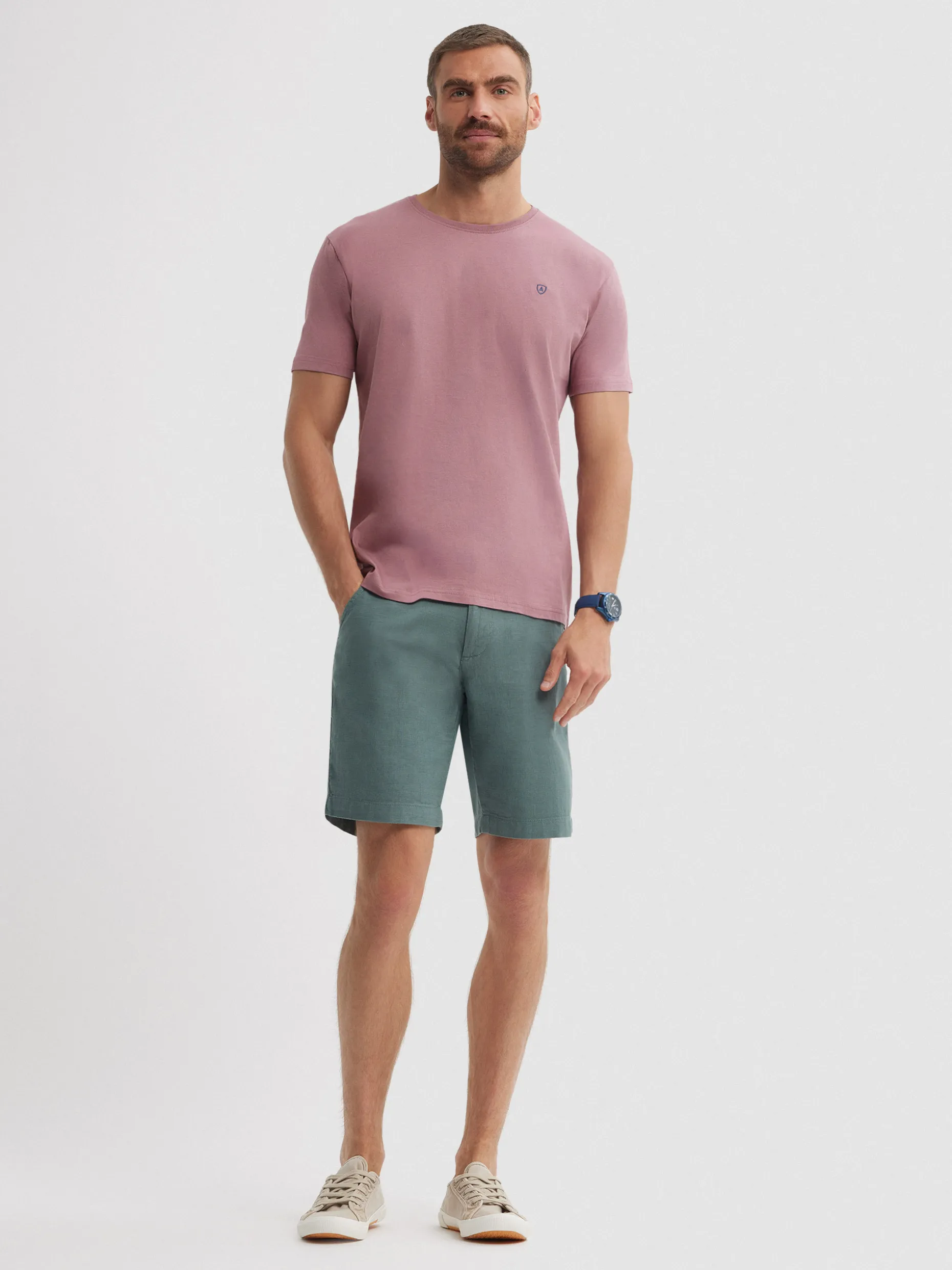 Camiseta lisa de corte regular fit confeccionada en algodón. Cuenta con cuello redondo, manga corta y logo de la marca grabado a contraste en el frontal.