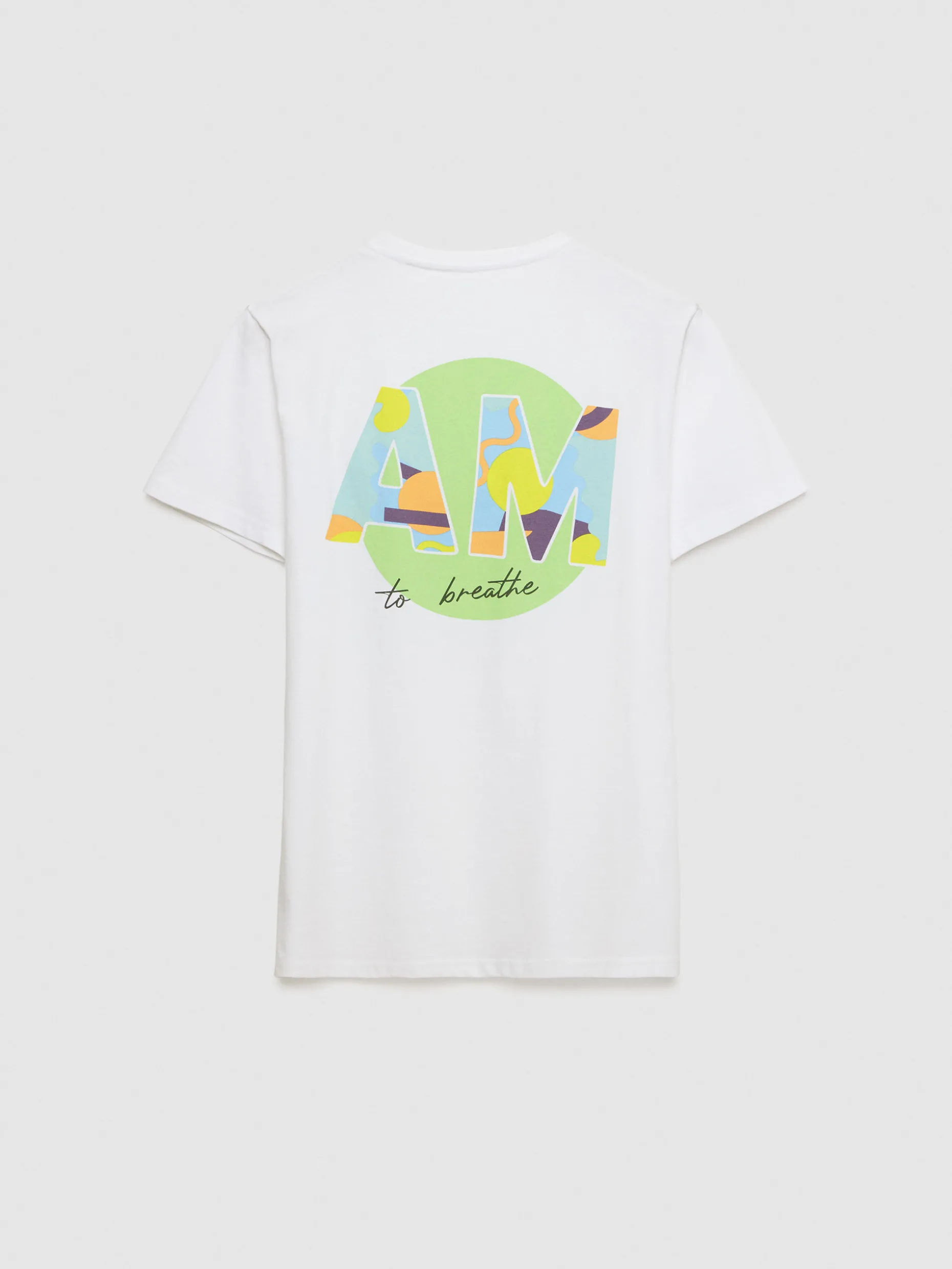 Camiseta con diseño personalizado estampado en la espalda y en el frontal con cuello redondo, manga corta y etiqueta canvas en el lateral. Corte regular fit.