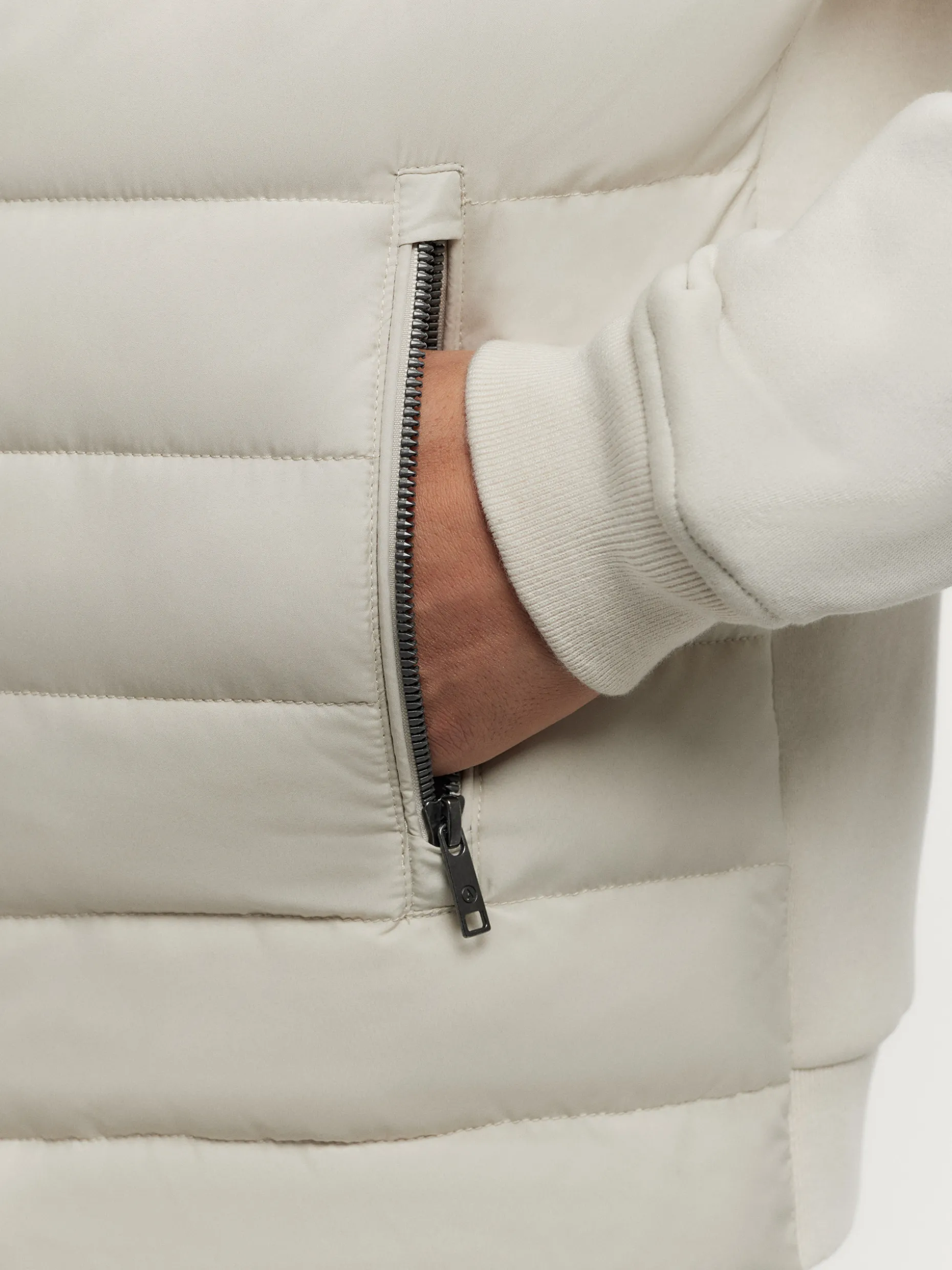Cazadora estilo bomber con cuello y mangas en tejido de punto. Cuenta en su parte delantera con cierre central mediante cremallera, dos bolsillos y parche con el logo de la marca grabado en el pecho.