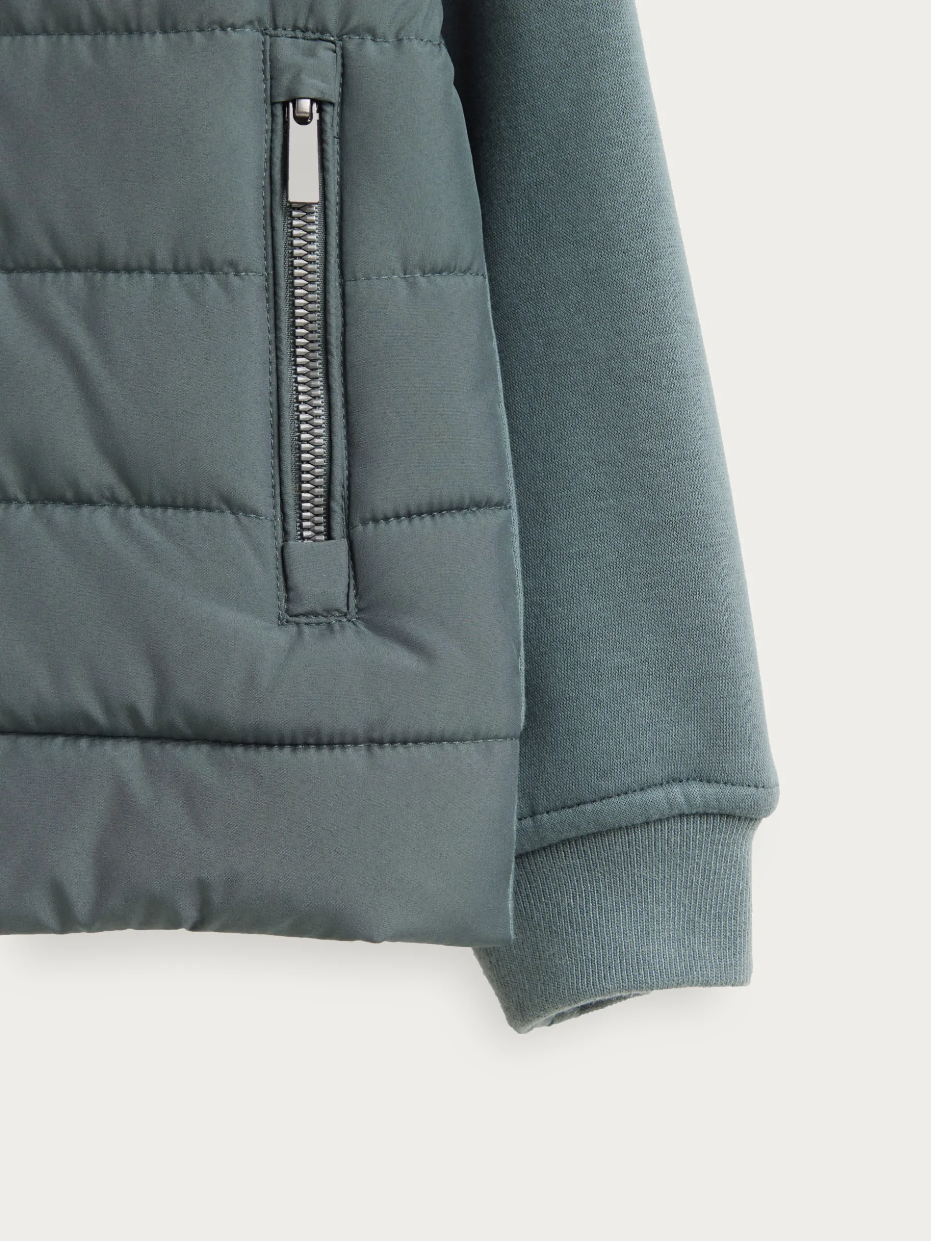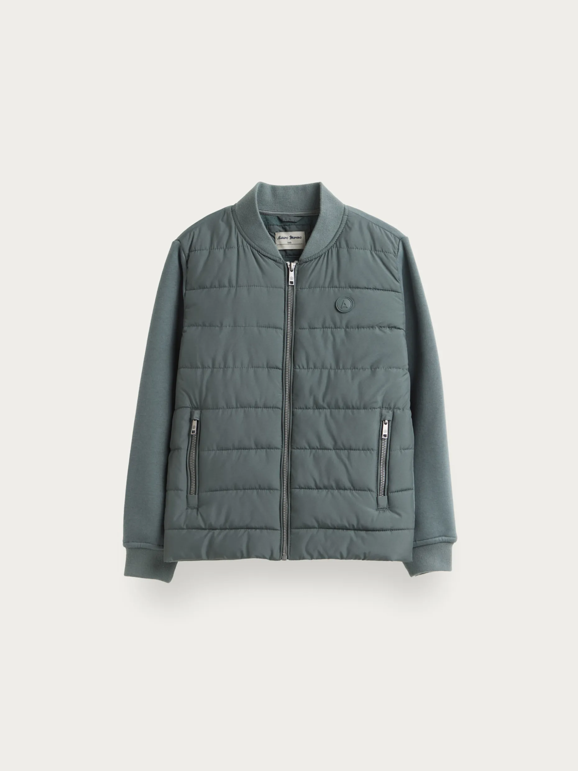Cazadora estilo bomber con cuello y mangas en tejido de punto. Cuenta en su parte delantera con cierre central mediante cremallera, dos bolsillos y parche con el logo de la marca grabado en el pecho.