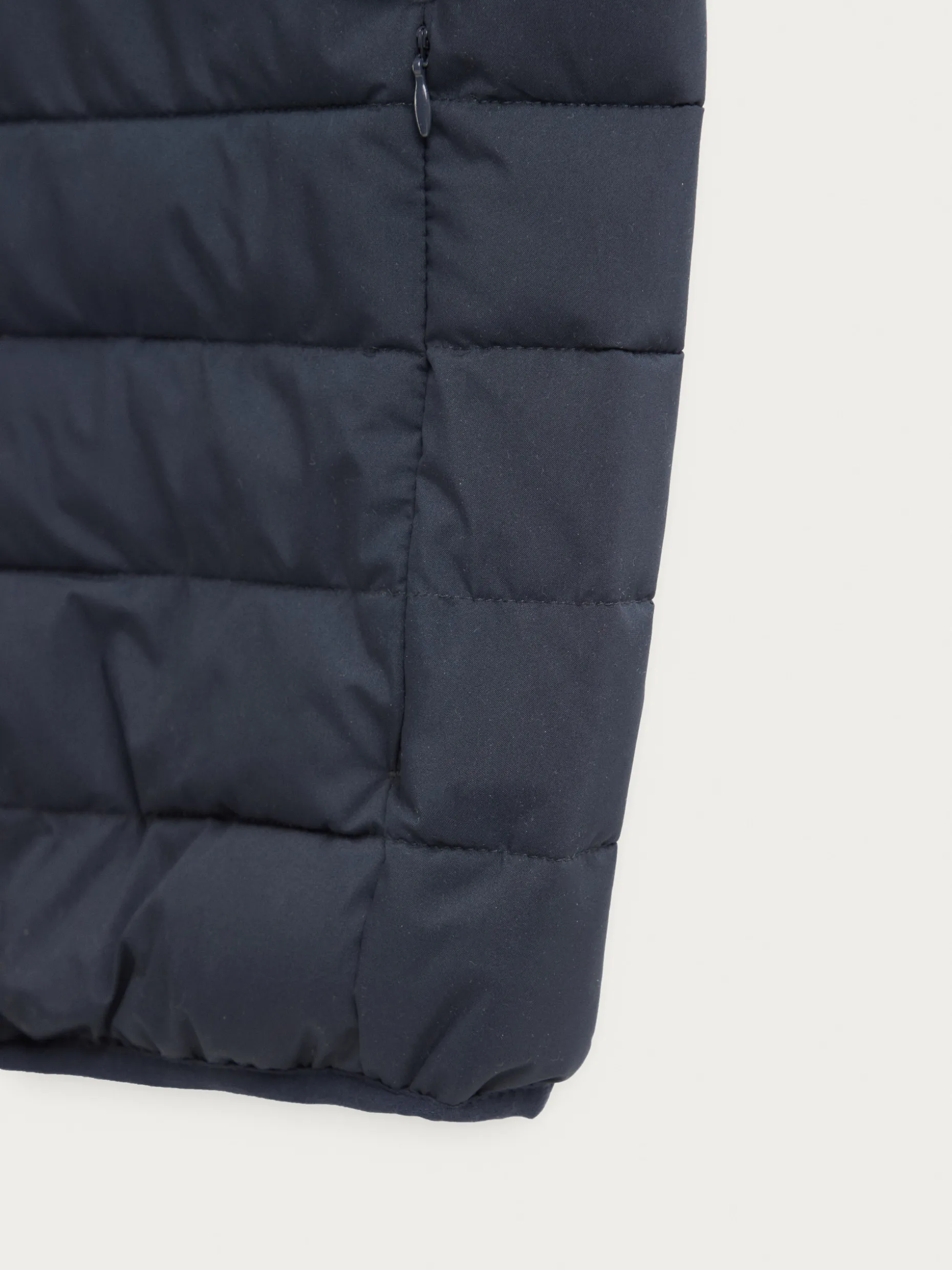 Chaleco con cierre central mediante cremallera y dos bolsillos en la cintura. Cuenta con cuello subido, logo grabado en el frontal y sisa y cintura en punto elástico. Corte regular fit.