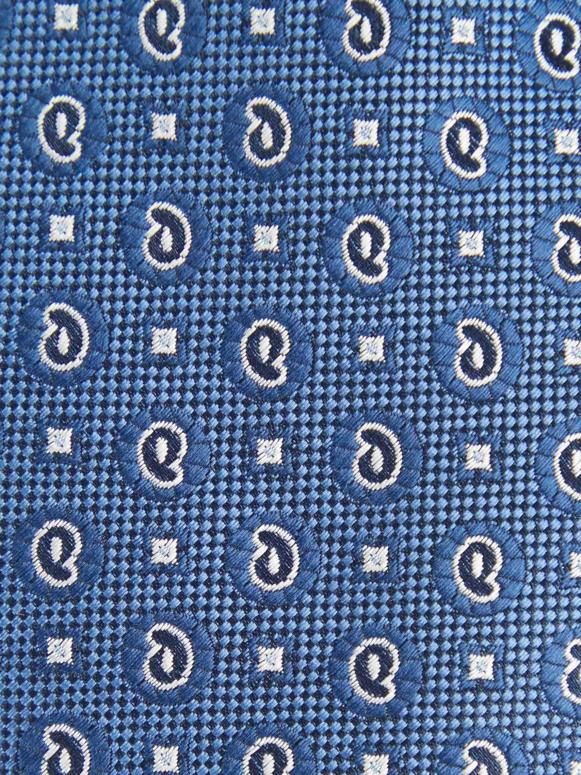 Corbata estilo jacquard con diseño estampado a contraste confeccionada en 100% poliéster. Cuenta con el logo de la marca grabado en el interior.