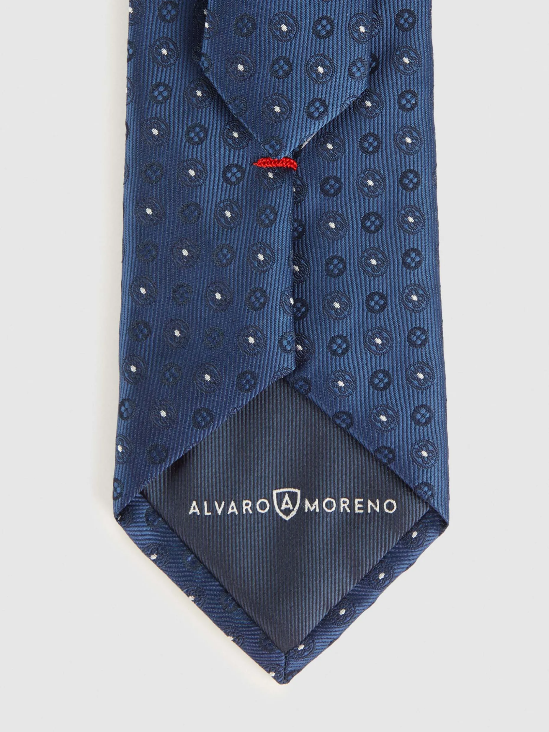Corbata estilo jacquard con diseño estampado a contraste confeccionada en 100% poliéster. Cuenta con el logo de la marca grabado en el interior.