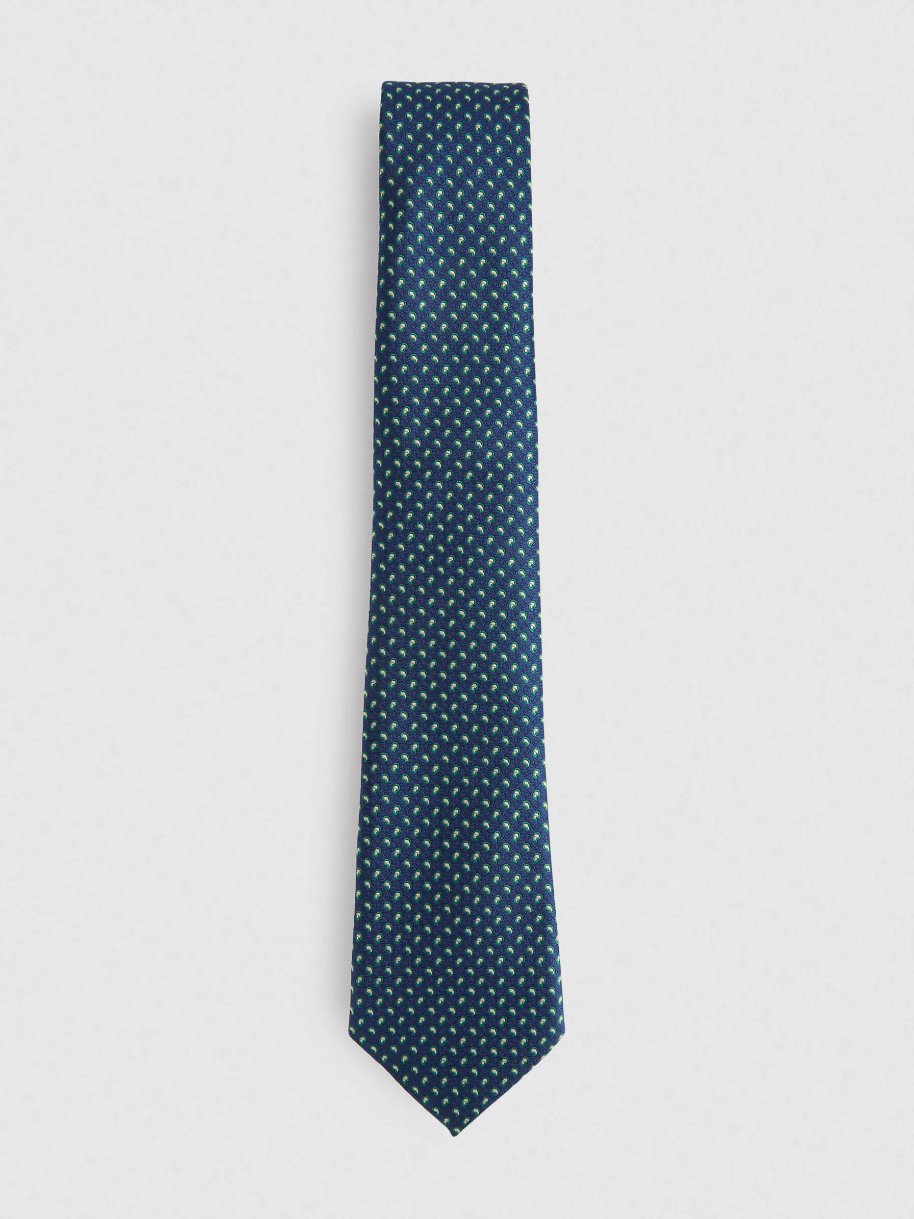 Corbata estilo jacquard con diseño estampado a contraste confeccionada en 100% poliéster. Cuenta con el logo de la marca grabado en el interior.
