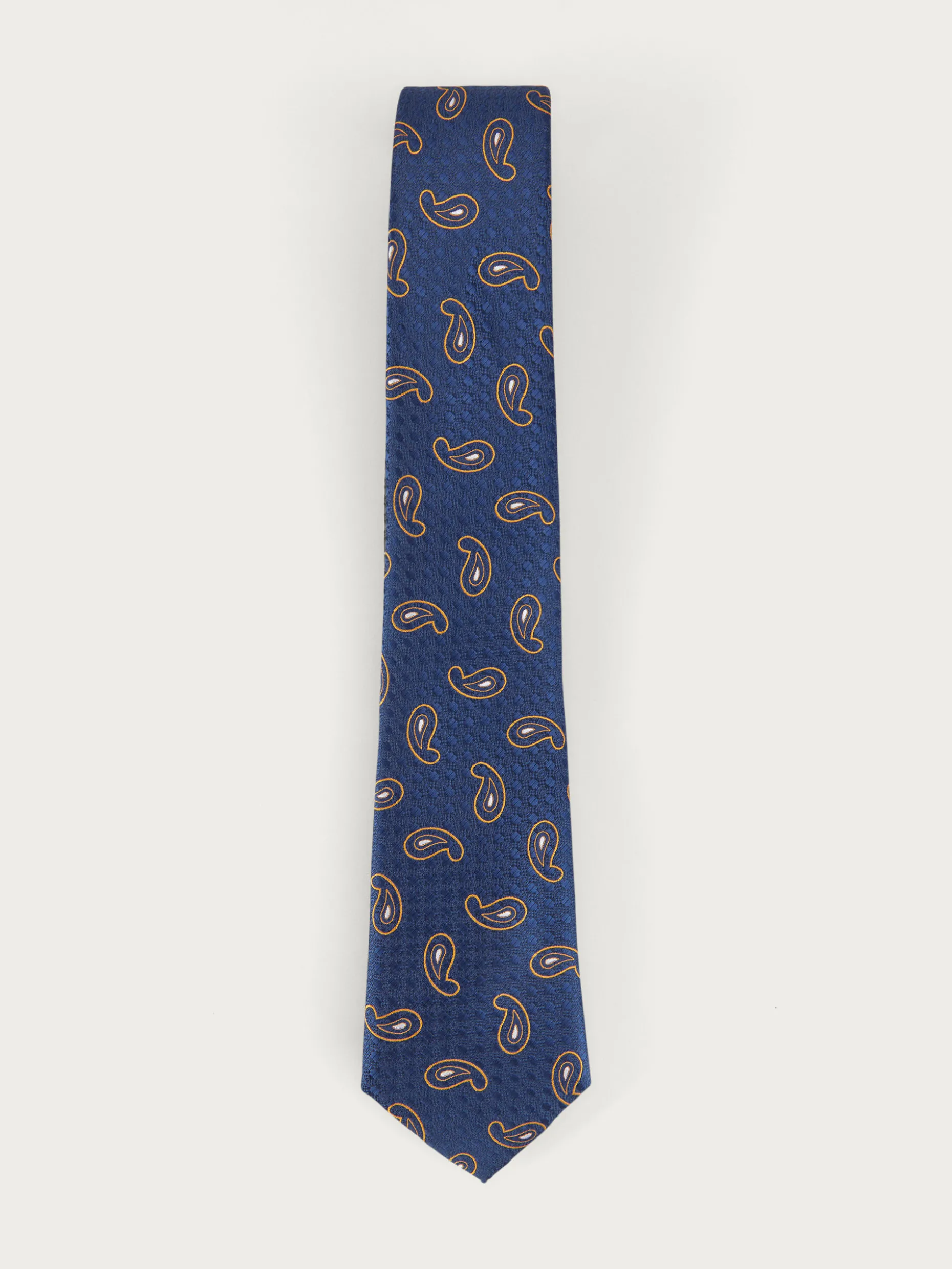 Corbata estilo jacquard con diseño estampado a contraste confeccionada en 100% poliéster. Cuenta con el logo de la marca grabado en el interior.