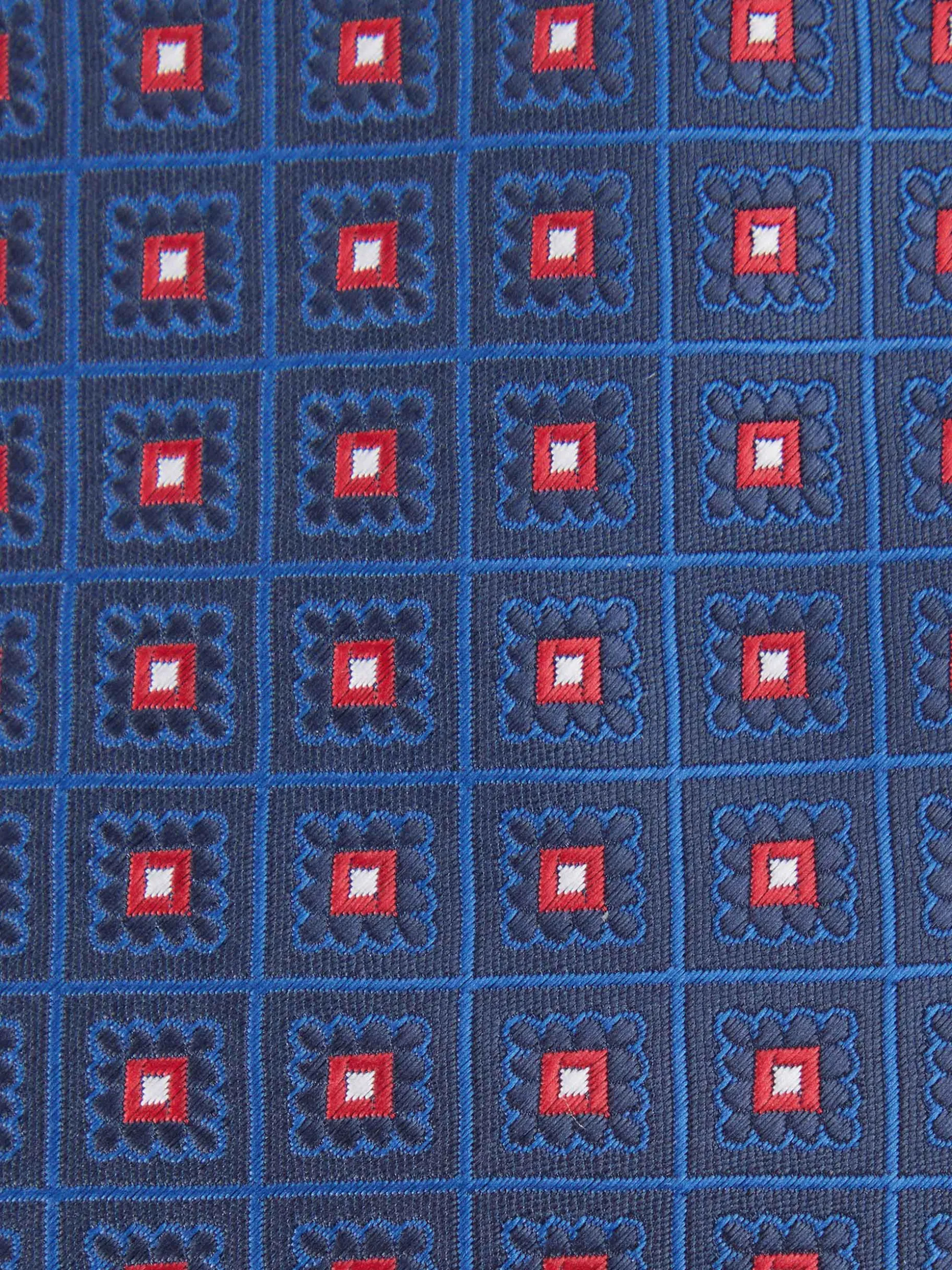 Corbata estilo jacquard con diseño estampado a contraste confeccionada en 100% poliéster. Cuenta con el logo de la marca grabado en el interior.