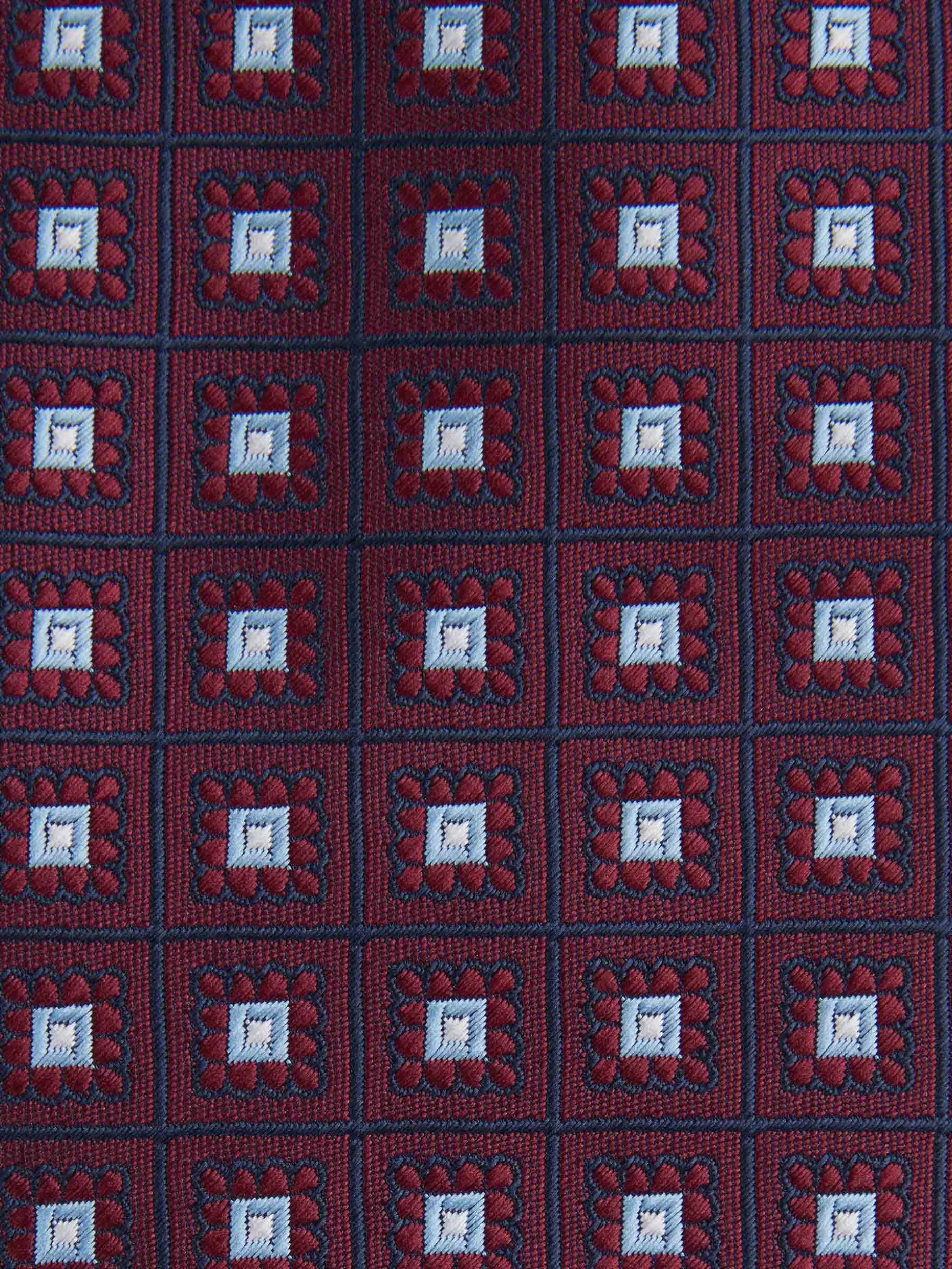 Corbata estilo jacquard con diseño estampado a contraste confeccionada en 100% poliéster. Cuenta con el logo de la marca grabado en el interior.