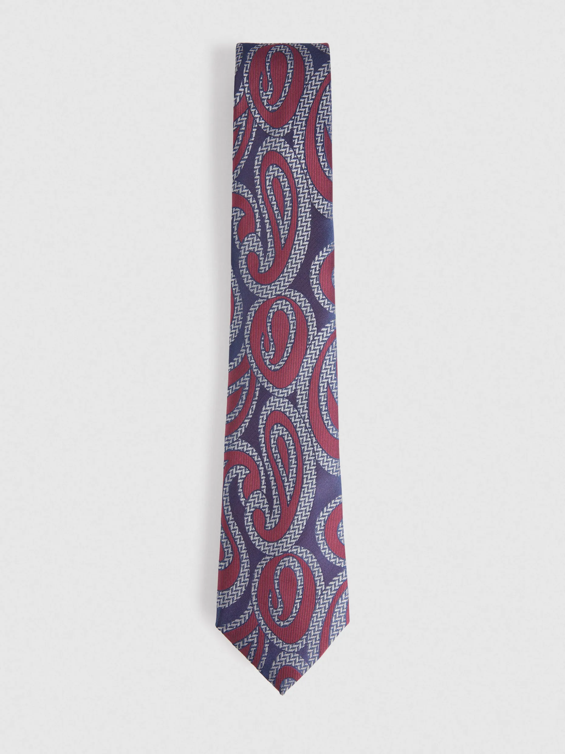 Corbata estilo jacquard con diseño estampado a contraste confeccionada en 100% poliéster. Cuenta con el logo de la marca grabado en el interior.
