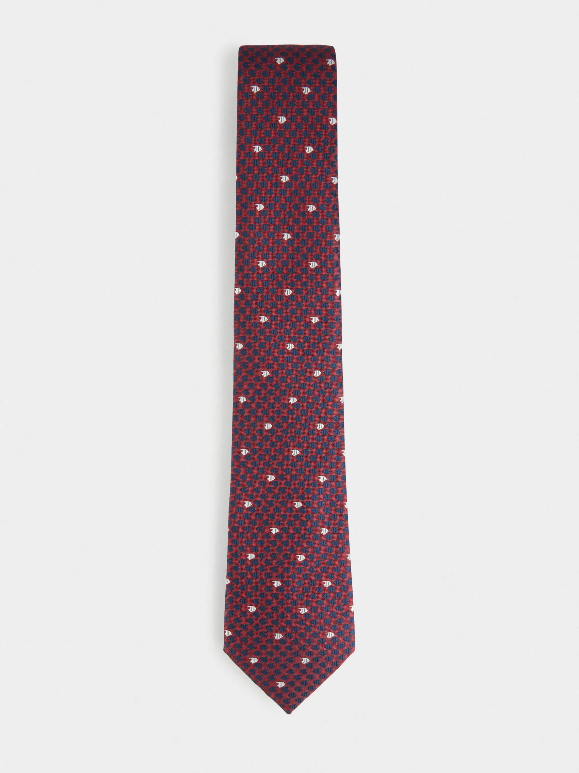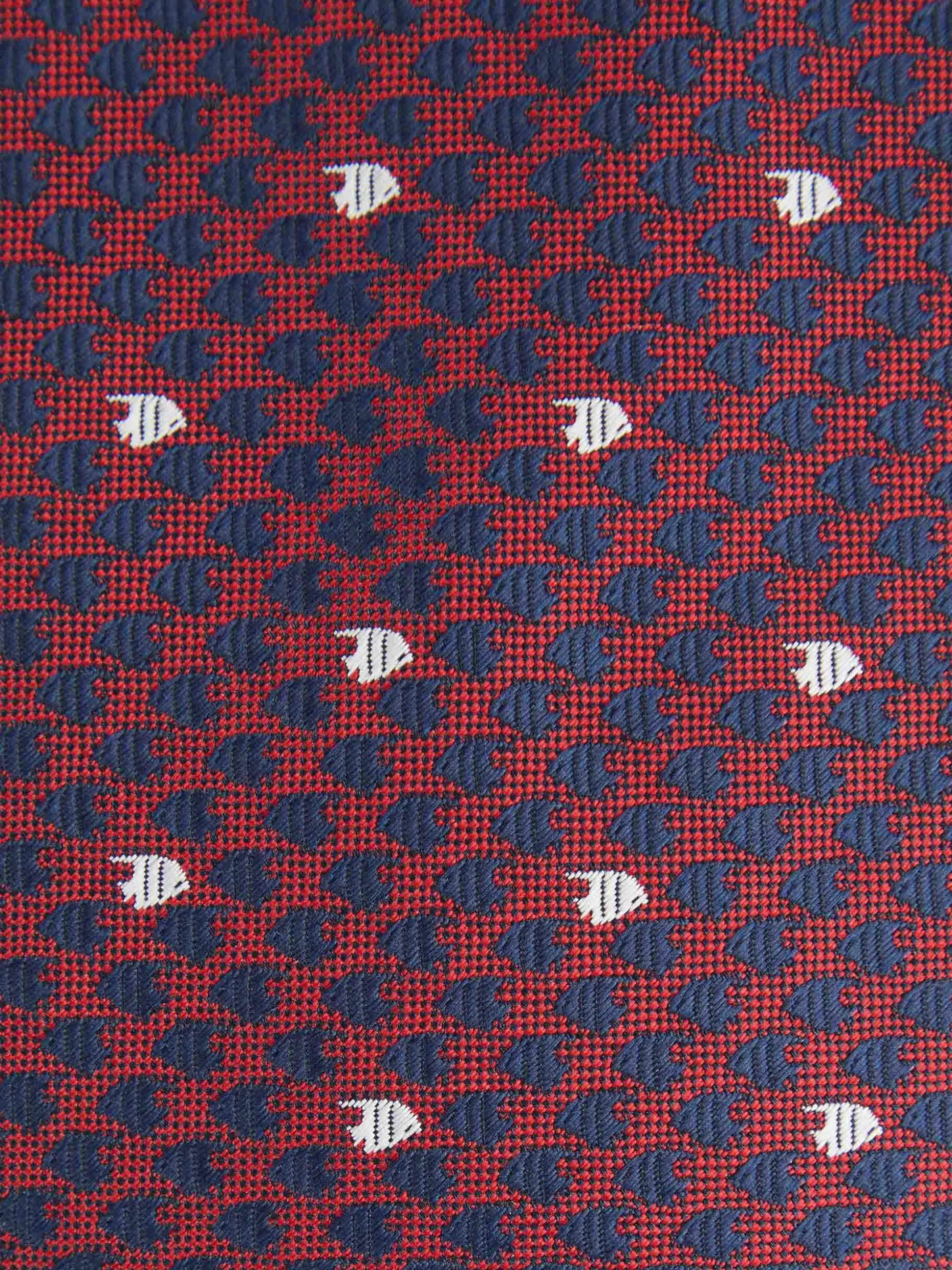 Corbata estilo jacquard con diseño estampado a contraste confeccionada en 100% poliéster. Cuenta con el logo de la marca grabado en el interior.