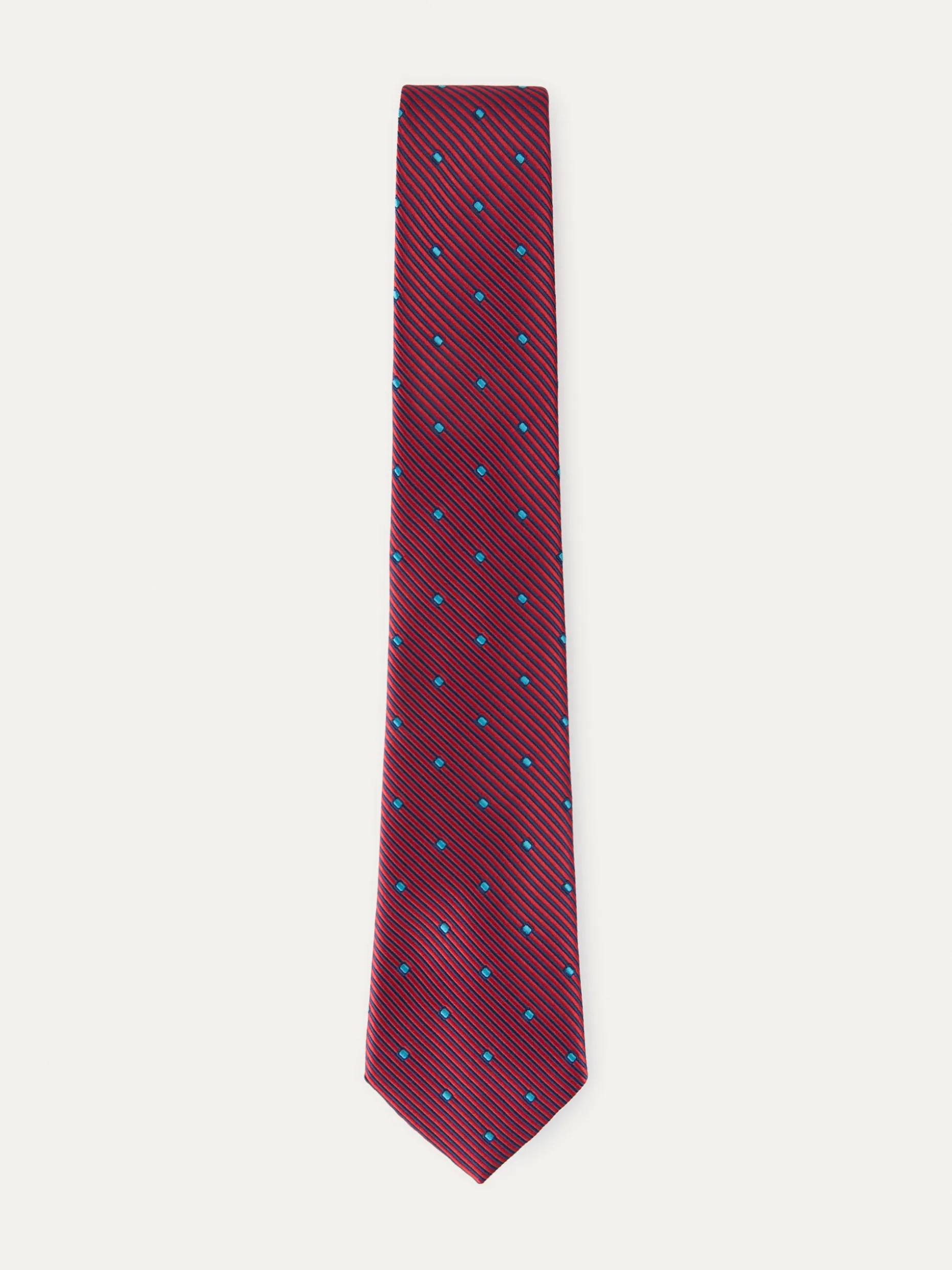 Corbata estilo jacquard con diseño estampado a contraste confeccionada en 100% poliéster. Cuenta con el logo de la marca grabado en el interior.