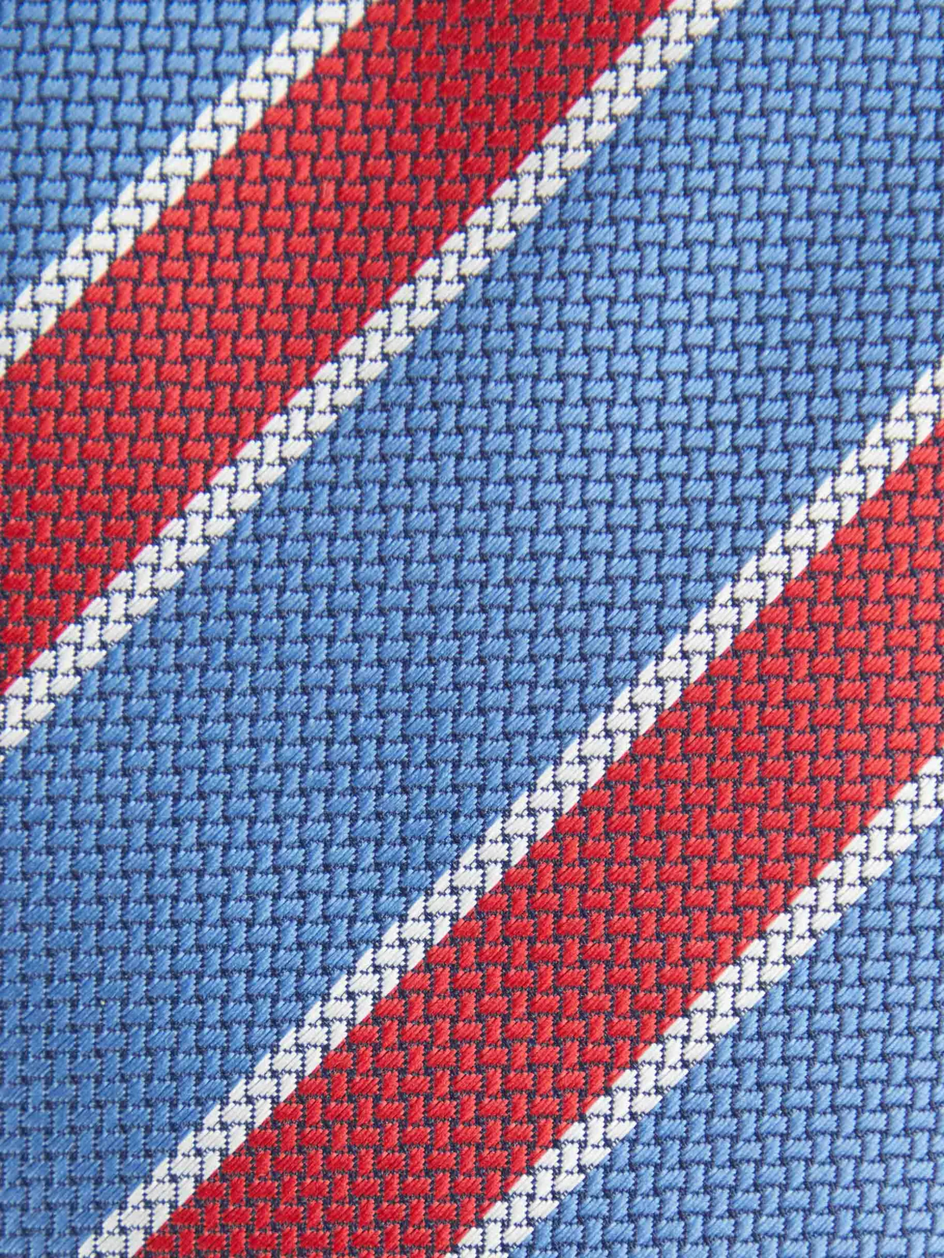 Corbata estilo jacquard con diseño estampado a contraste confeccionada en 100% poliéster. Cuenta con el logo de la marca grabado en el interior.