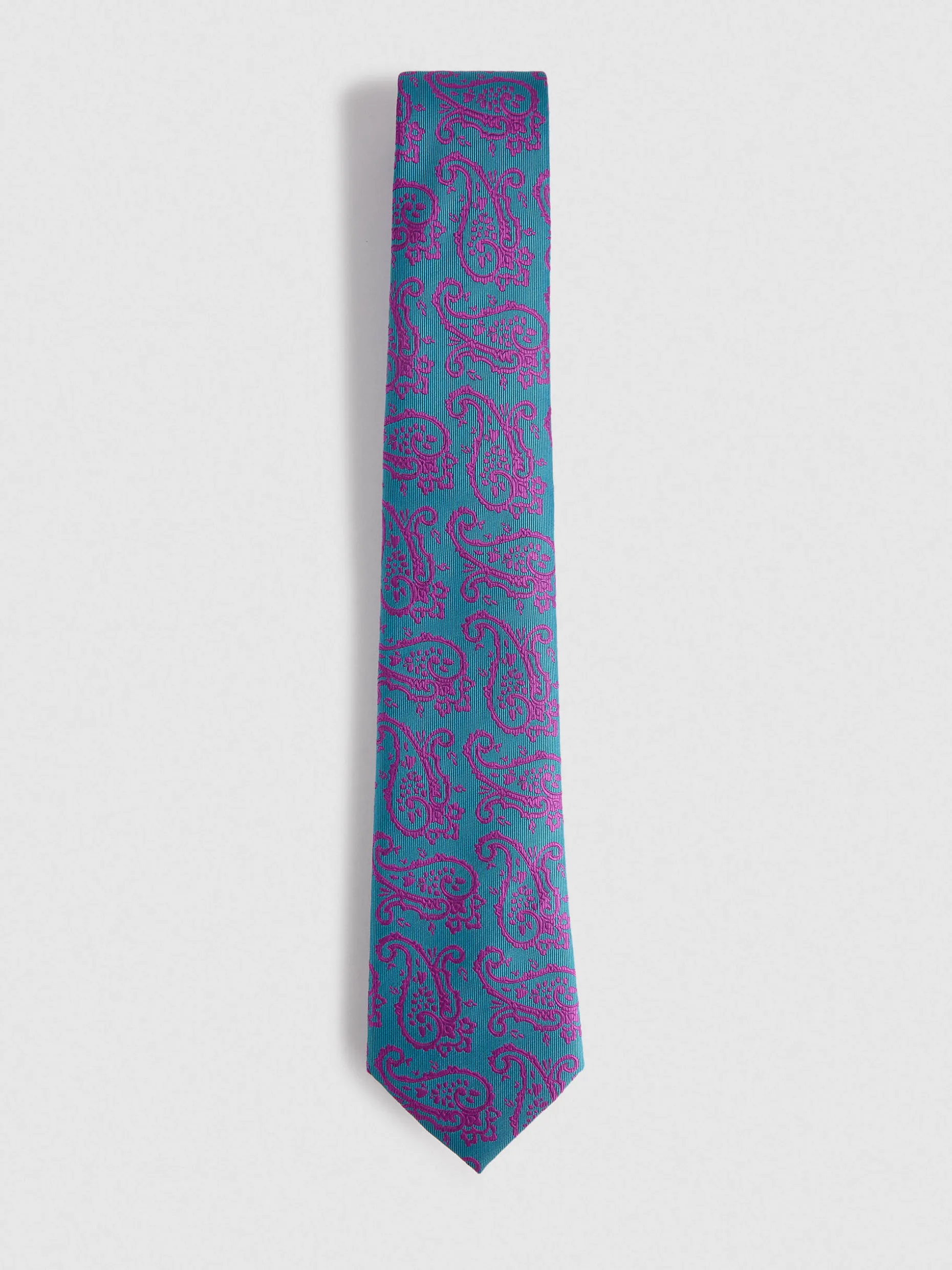 Corbata estilo jacquard con diseño estampado a contraste confeccionada en 100% poliéster. Cuenta con el logo de la marca grabado en el interior.