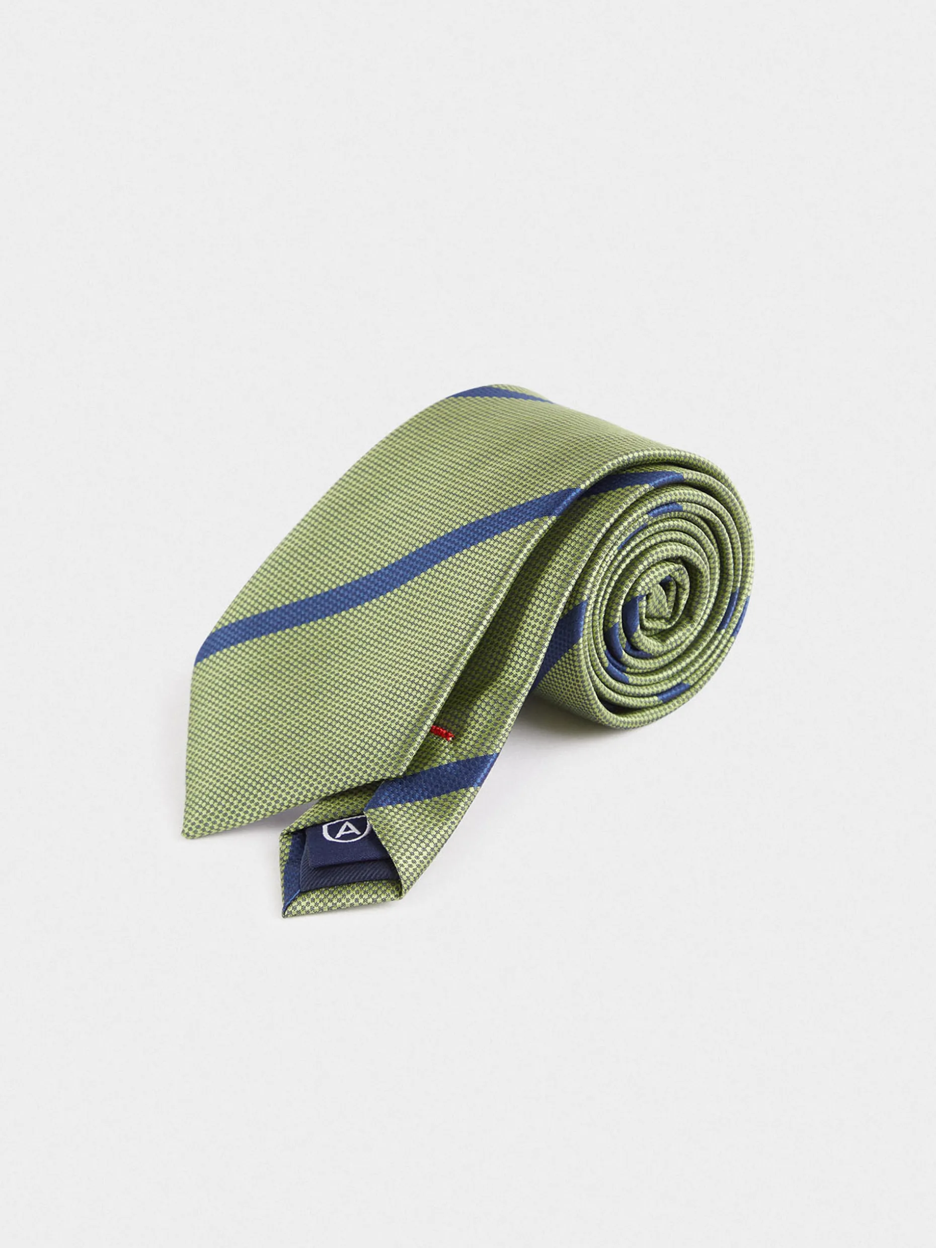 Corbata estilo jacquard con diseño estampado a contraste confeccionada en 100% poliéster. Cuenta con el logo de la marca grabado en el interior.