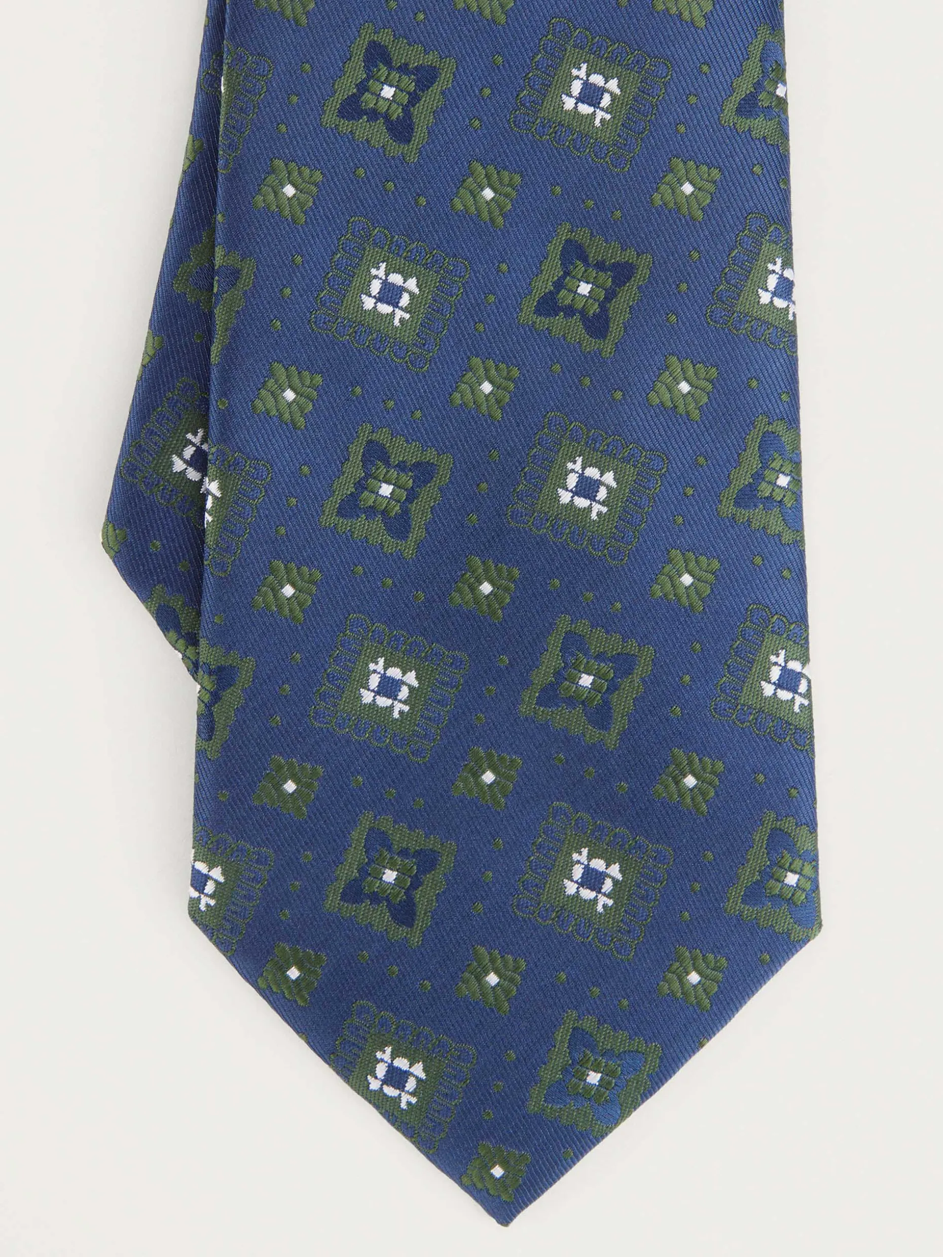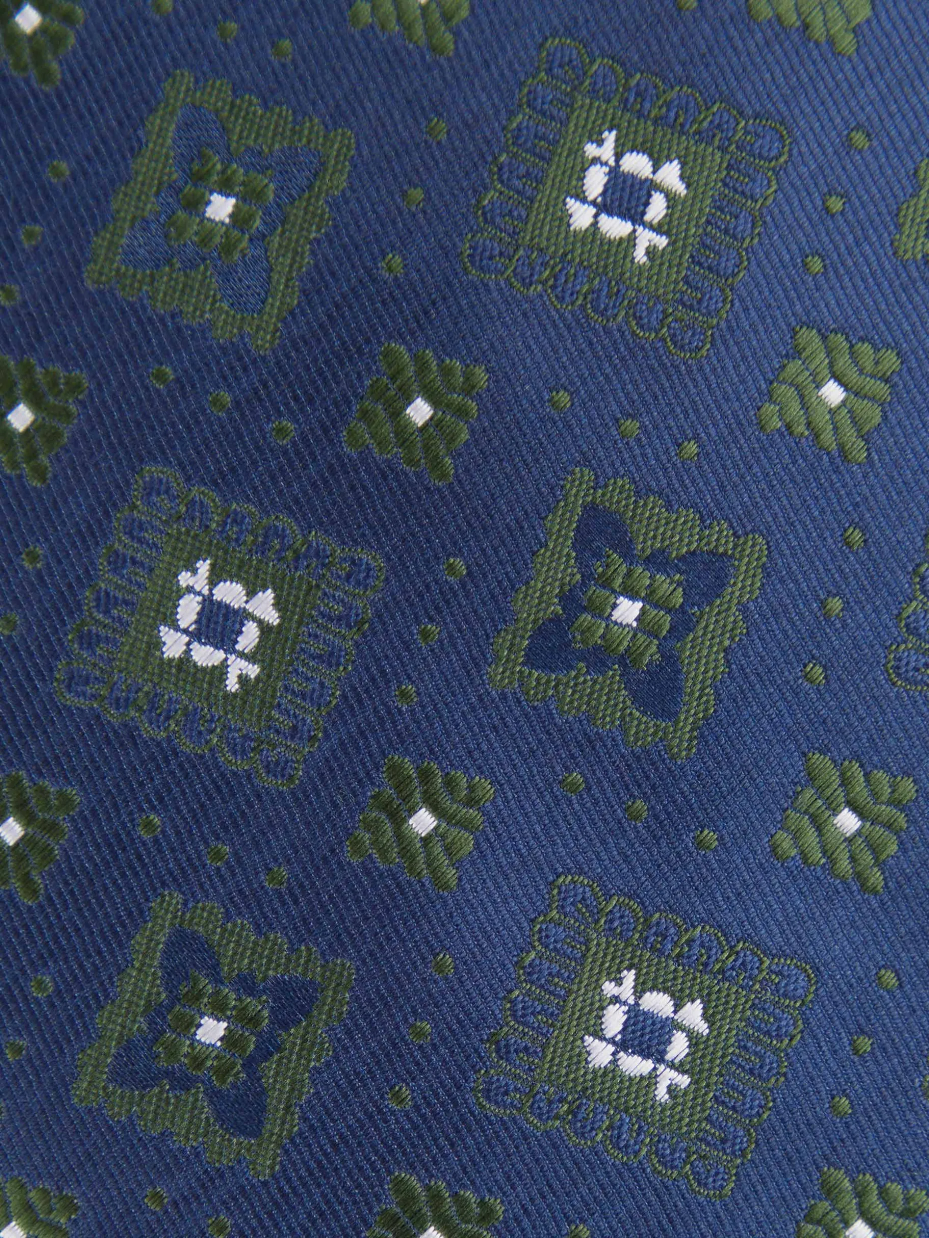 Corbata estilo jacquard con diseño estampado a contraste confeccionada en 100% poliéster. Cuenta con el logo de la marca grabado en el interior.