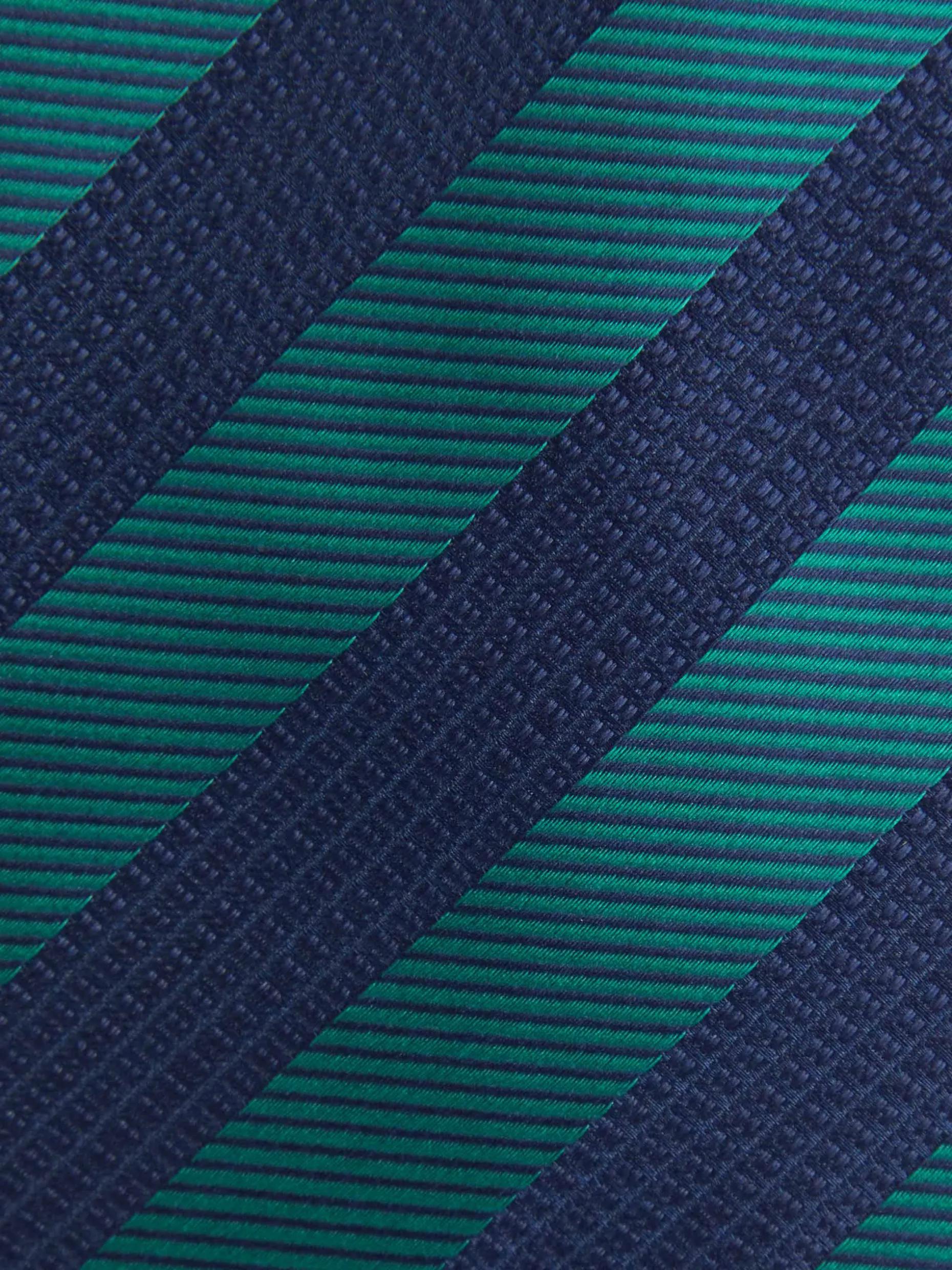 Corbata estilo jacquard con diseño estampado a contraste confeccionada en 100% poliéster. Cuenta con el logo de la marca grabado en el interior.