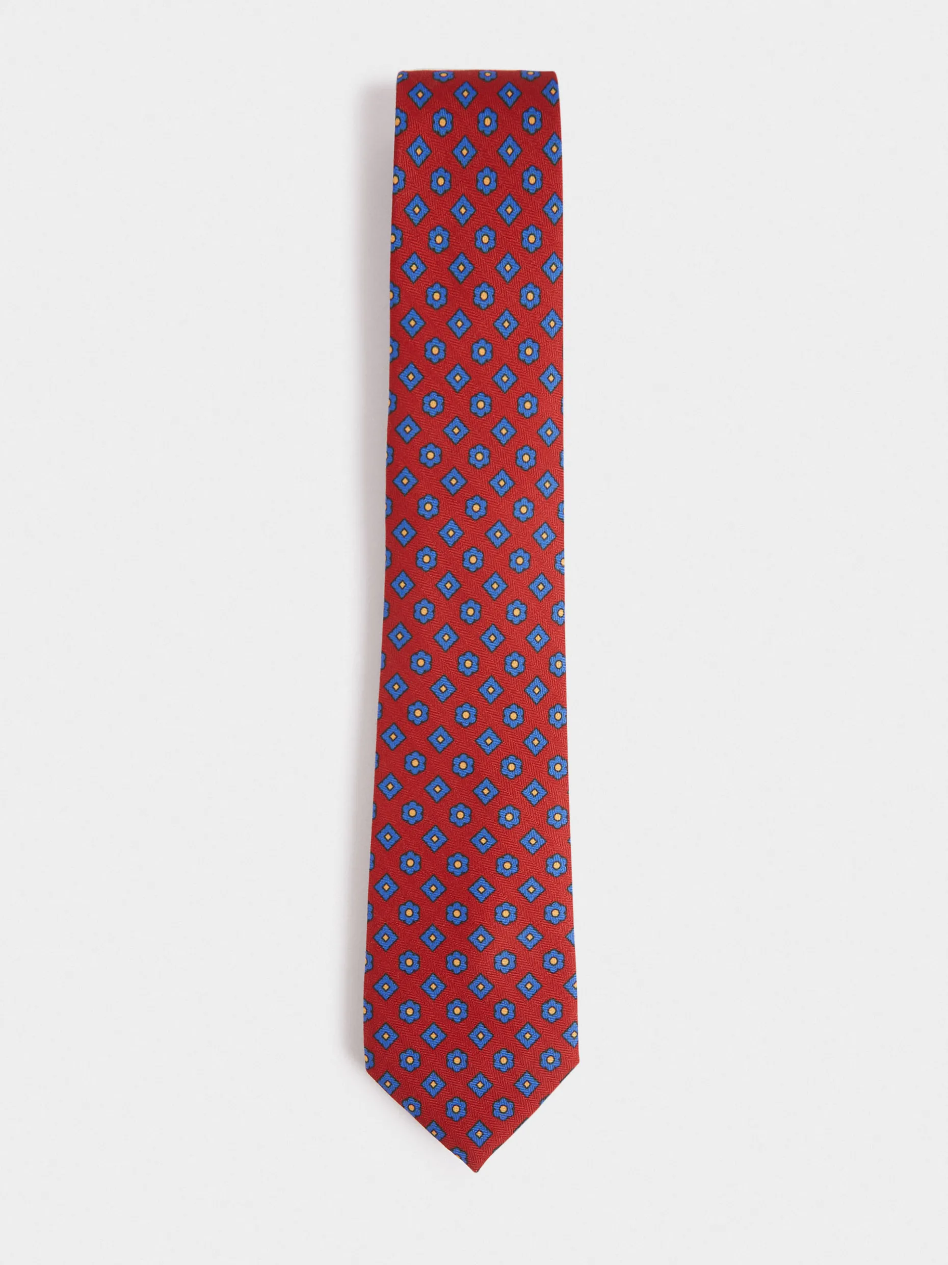Corbata con diseño estampado personalizado confeccionada en 100% poliéster. Cuenta con el logo de la marca grabado en el interior.