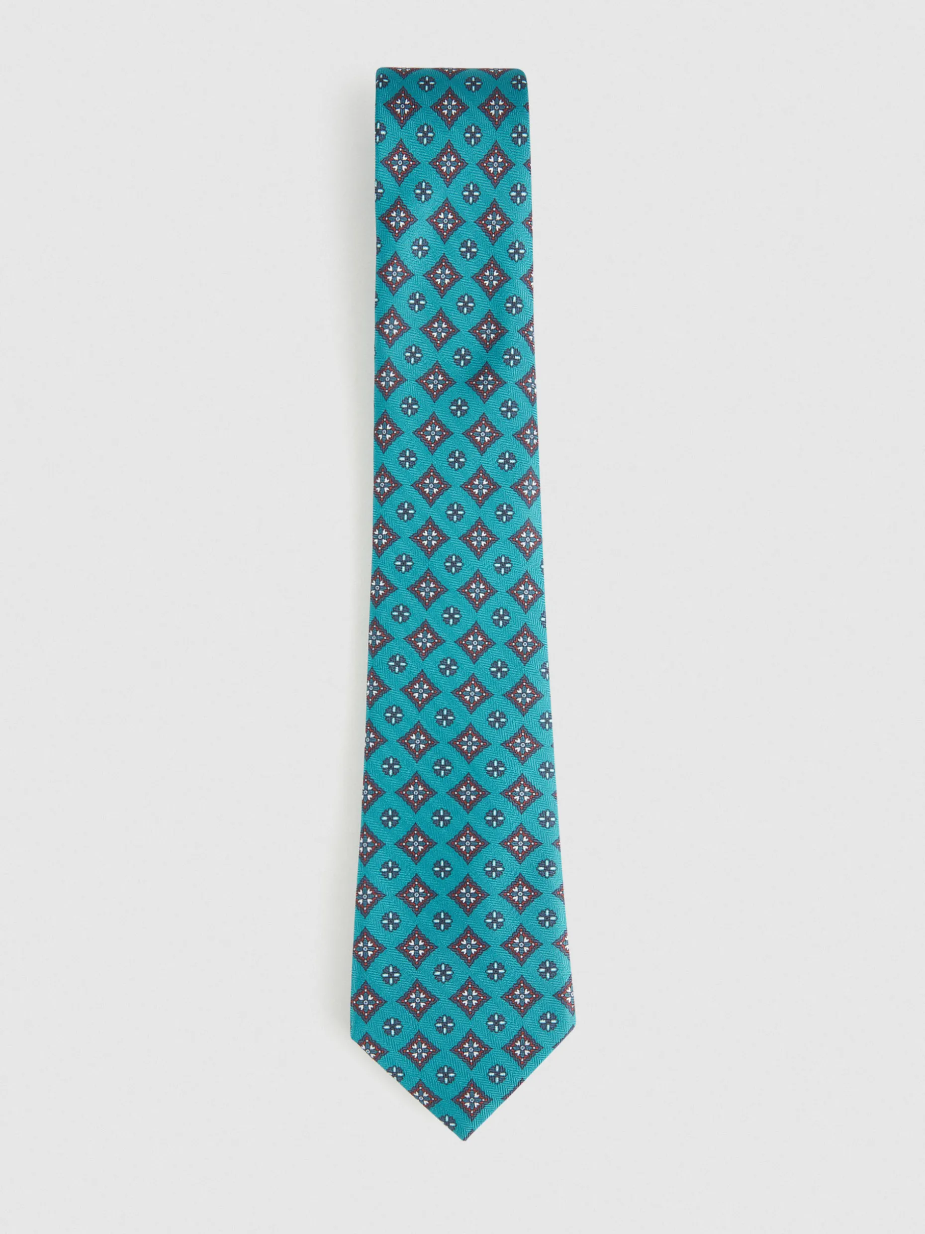 Corbata con diseño estampado personalizado confeccionada en 100% poliéster. Cuenta con el logo de la marca grabado en el interior.