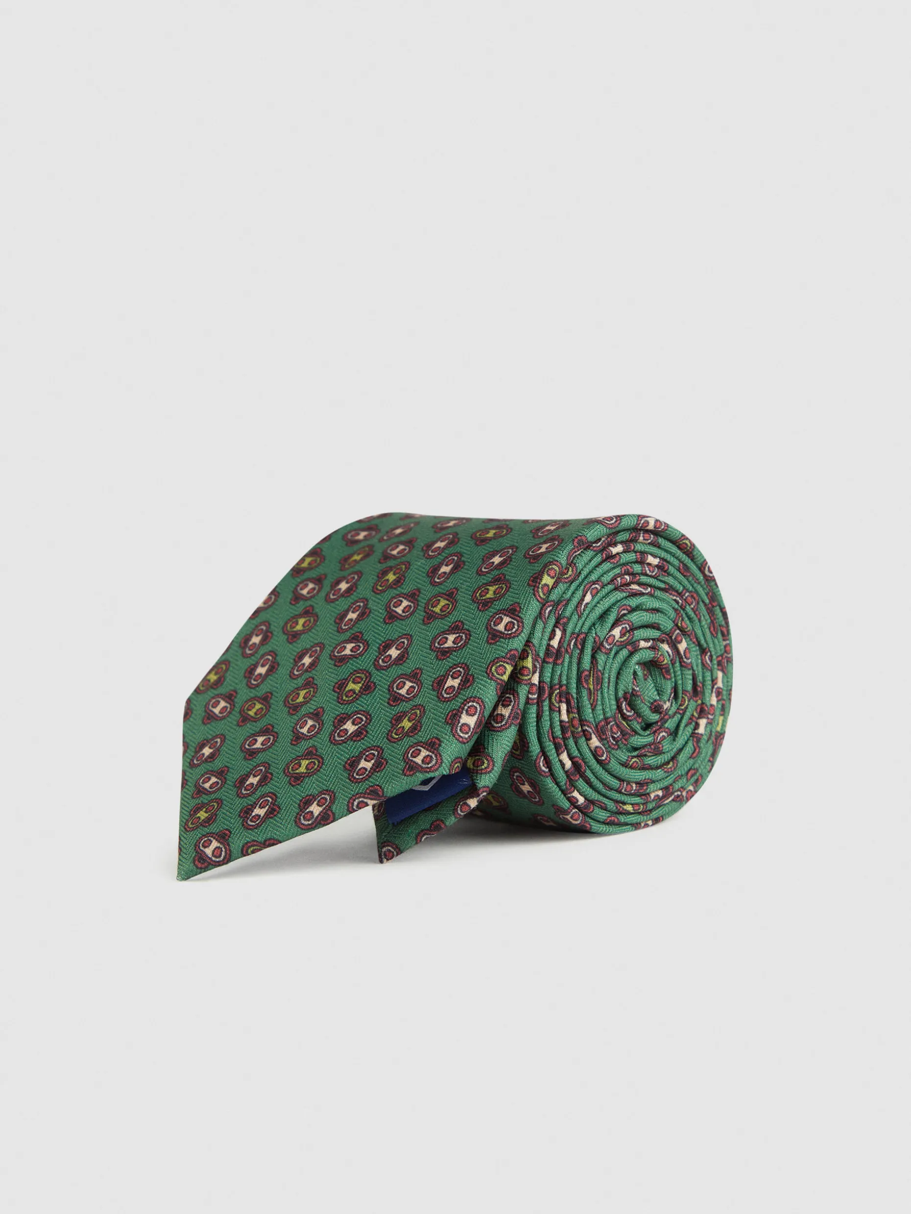 Corbata con diseño estampado personalizado confeccionada en 100% poliéster. Cuenta con el logo de la marca grabado en el interior.