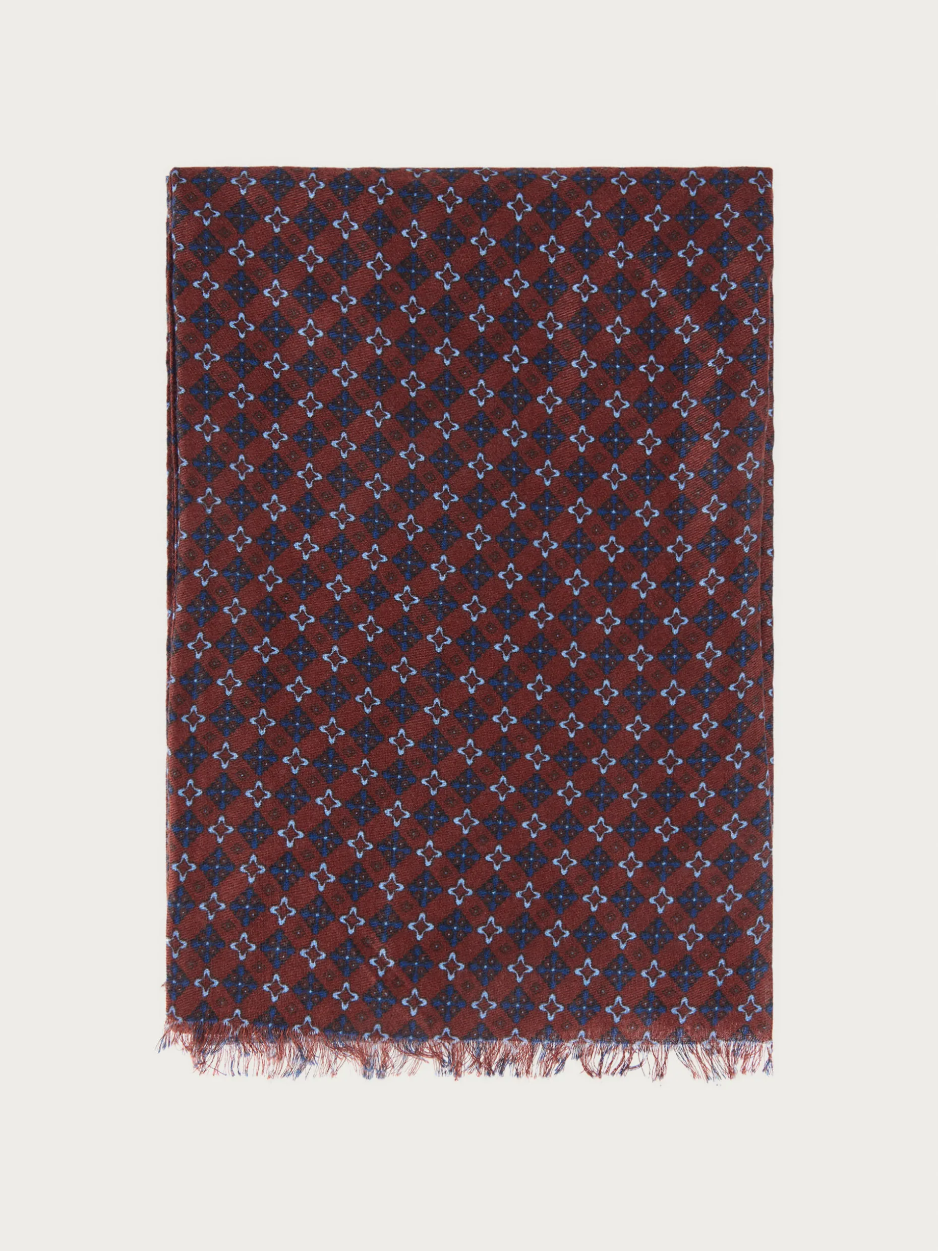Foulard de diseño personalizado estampado confeccionado en tejido suave y cálido. Terminación con flecos.
