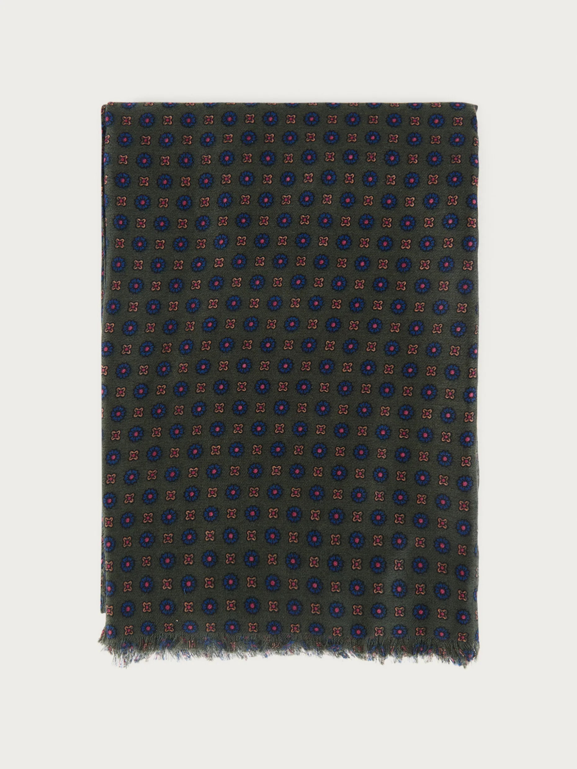 Foulard de diseño personalizado estampado confeccionado en tejido suave y cálido. Terminación con flecos.