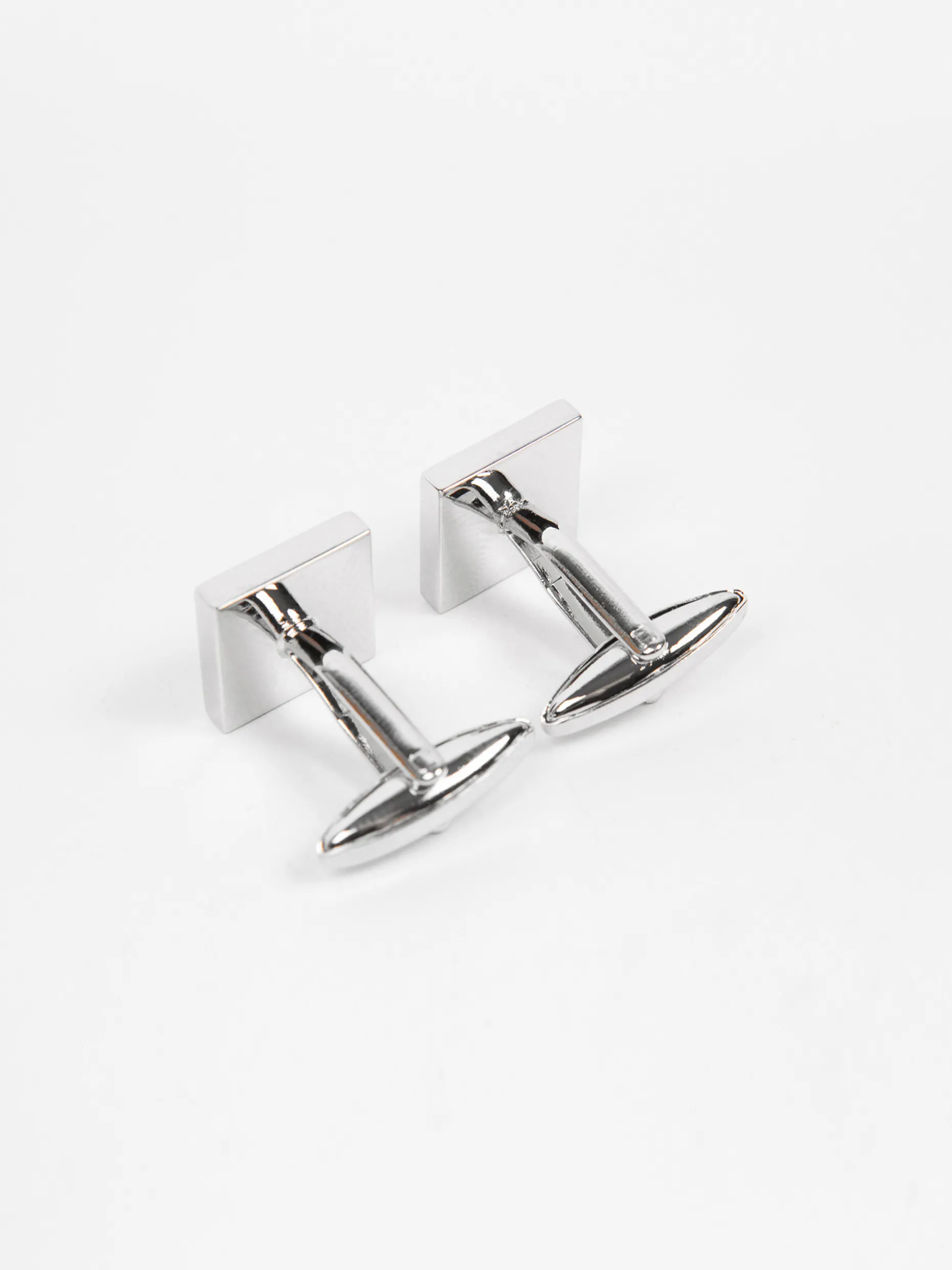 Gemelo metálico de forma cuadrada que cuenta con engarce de madre perla.