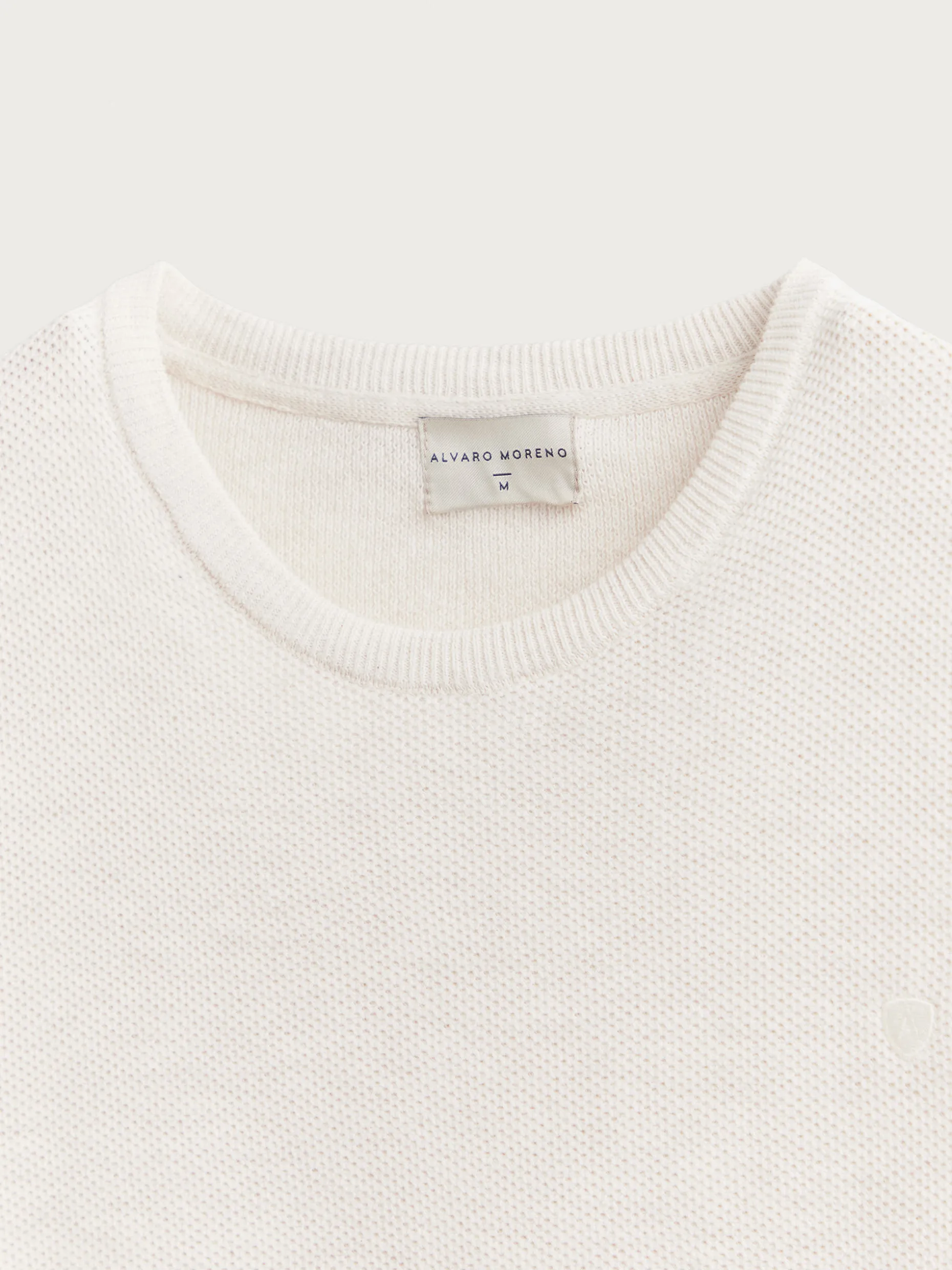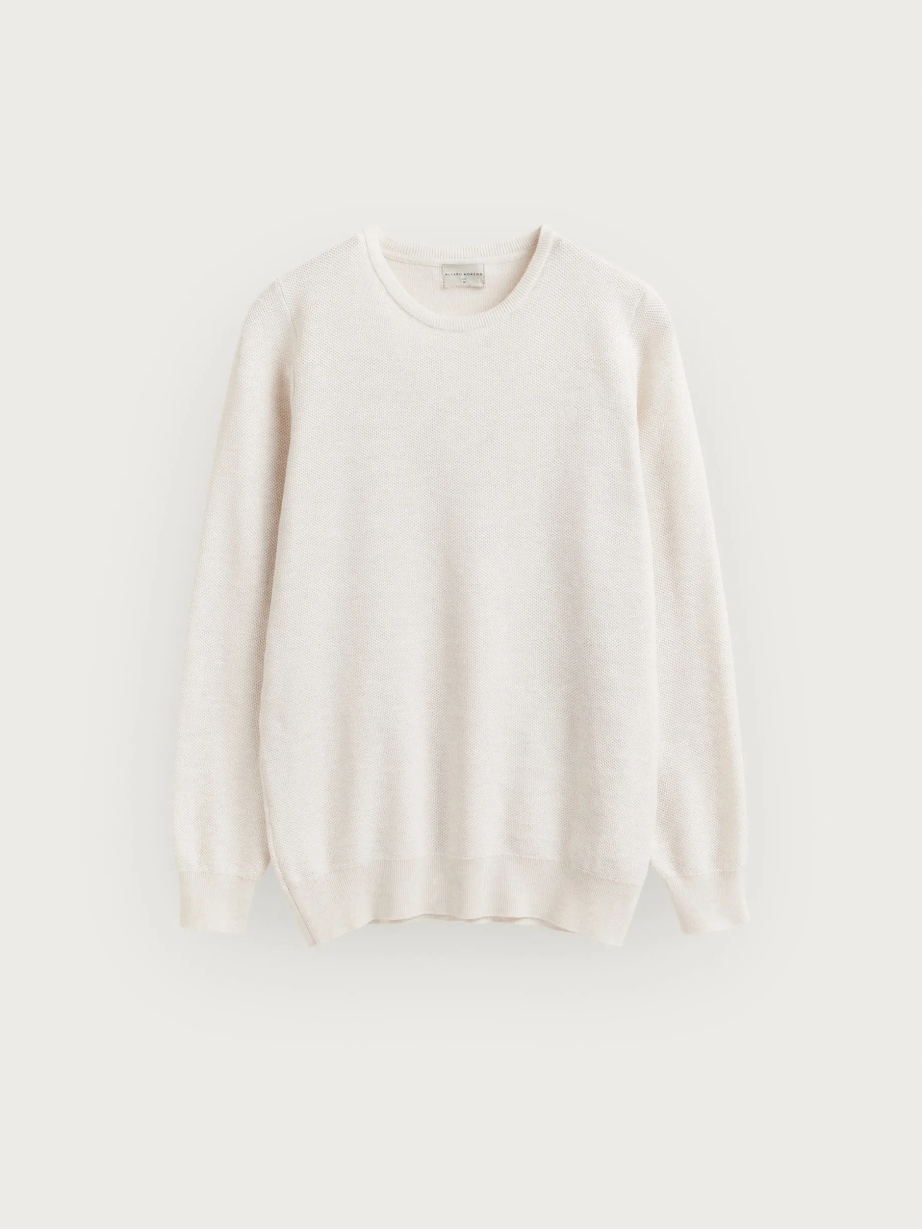 Jersey con tejido de estructura, cuello a la caja y logo de la marca bordado en el frontal al tono. Bajo, puños y cuello en acabado ribeteado de punto elástico para mayor comodidad. Corte regular fit.