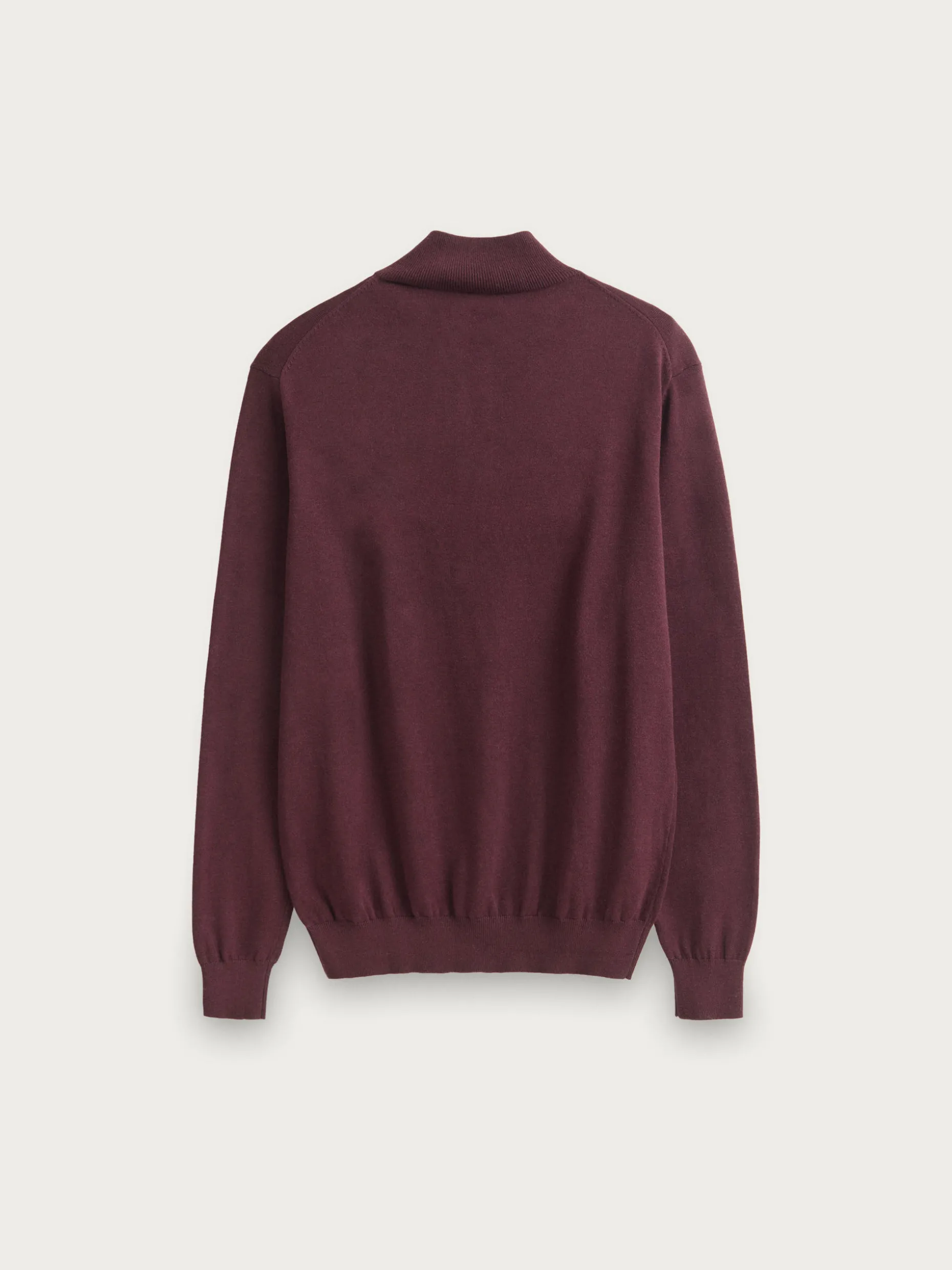 Jersey de corte regular confeccionado en algodón. Cuello alto con medio cierre de cremallera. Logo bordado en el frontal al tono. Cuello, puños y bajo en acabado elástico.