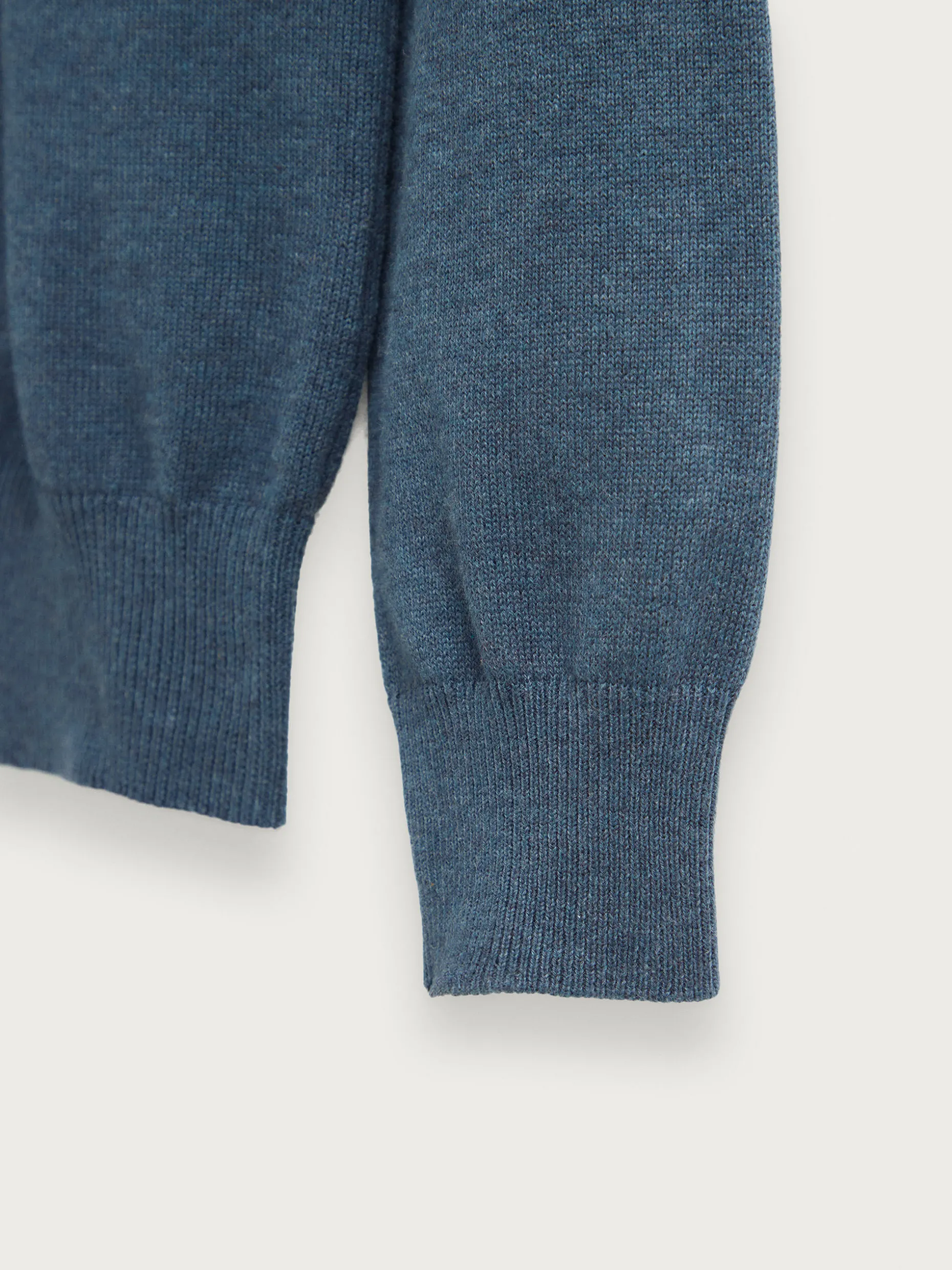 Jersey liso con cuello de pico, manga larga y logo de la marca grabado en el frontal al tono. Cuello, puños y bajo en acabado ribeteado. Corte regular fit.