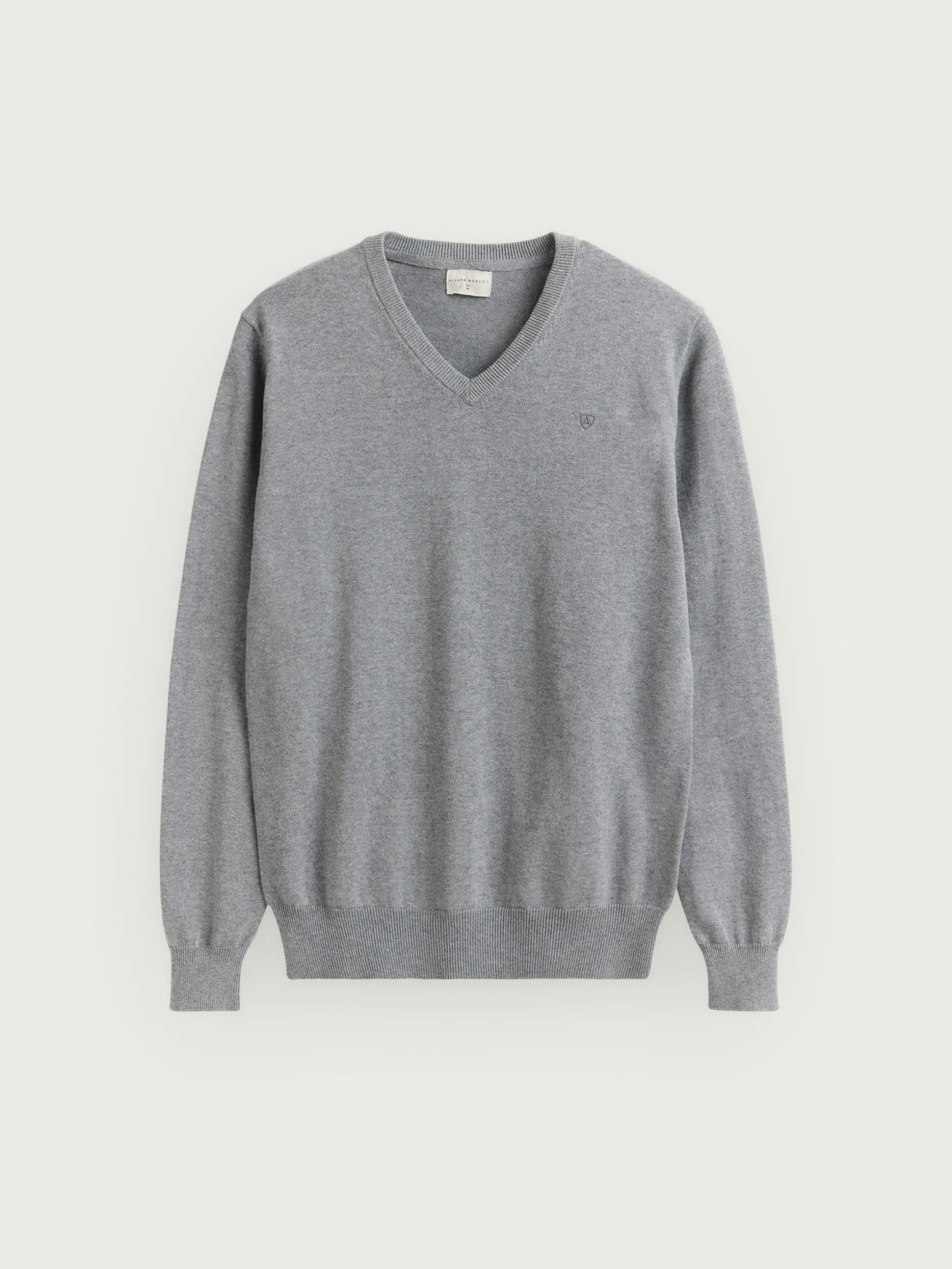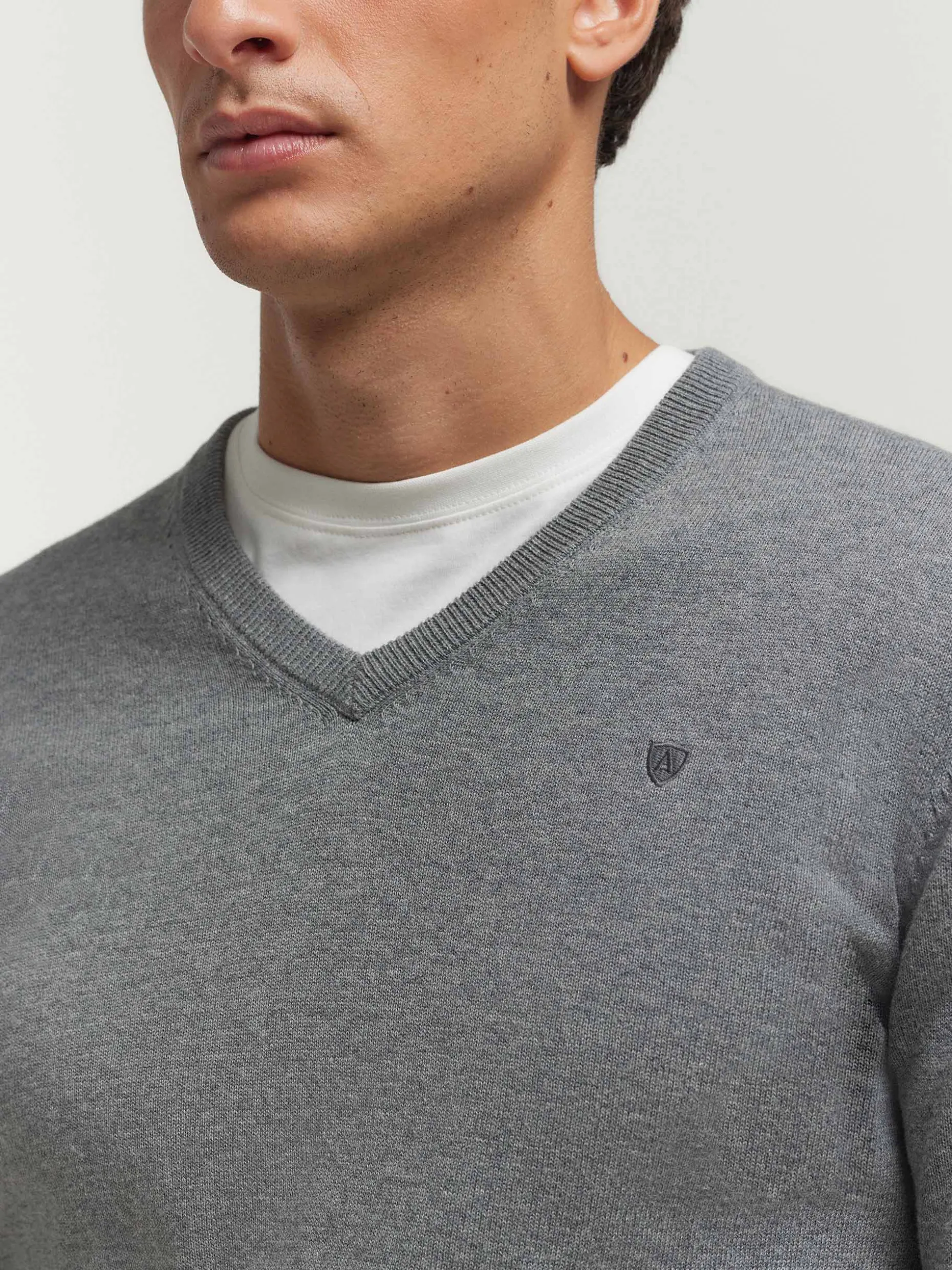 Jersey liso con cuello de pico, manga larga y logo de la marca grabado en el frontal al tono. Cuello, puños y bajo en acabado ribeteado. Corte regular fit.