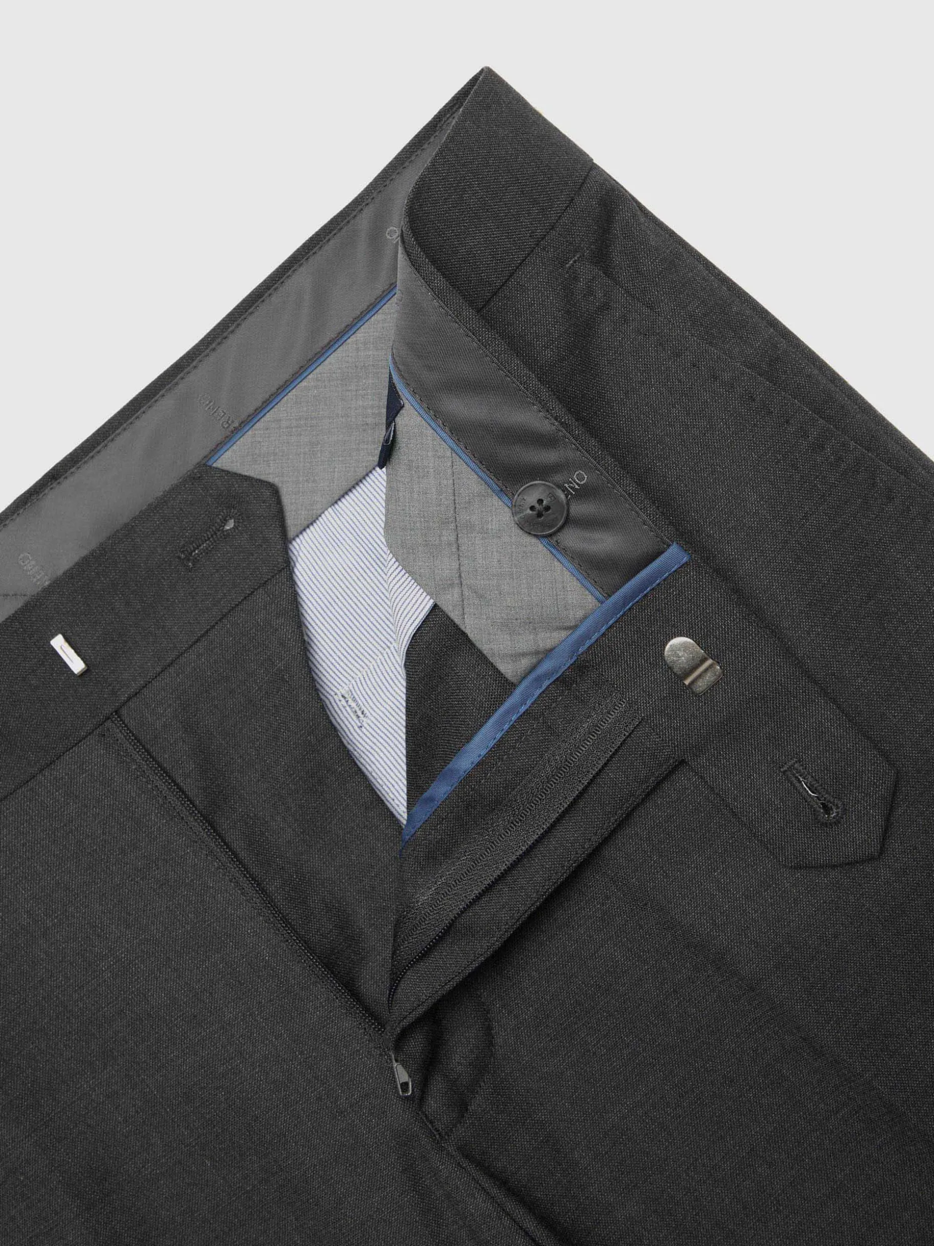 Pantalón en tejido fil fil que cuenta con cierre frontal de cremallera y botones personalizados. Dos bolsillos abiertos en la parte delantera y dos bolsillos traseros con cierre mediante botón. Forrado interiormente.