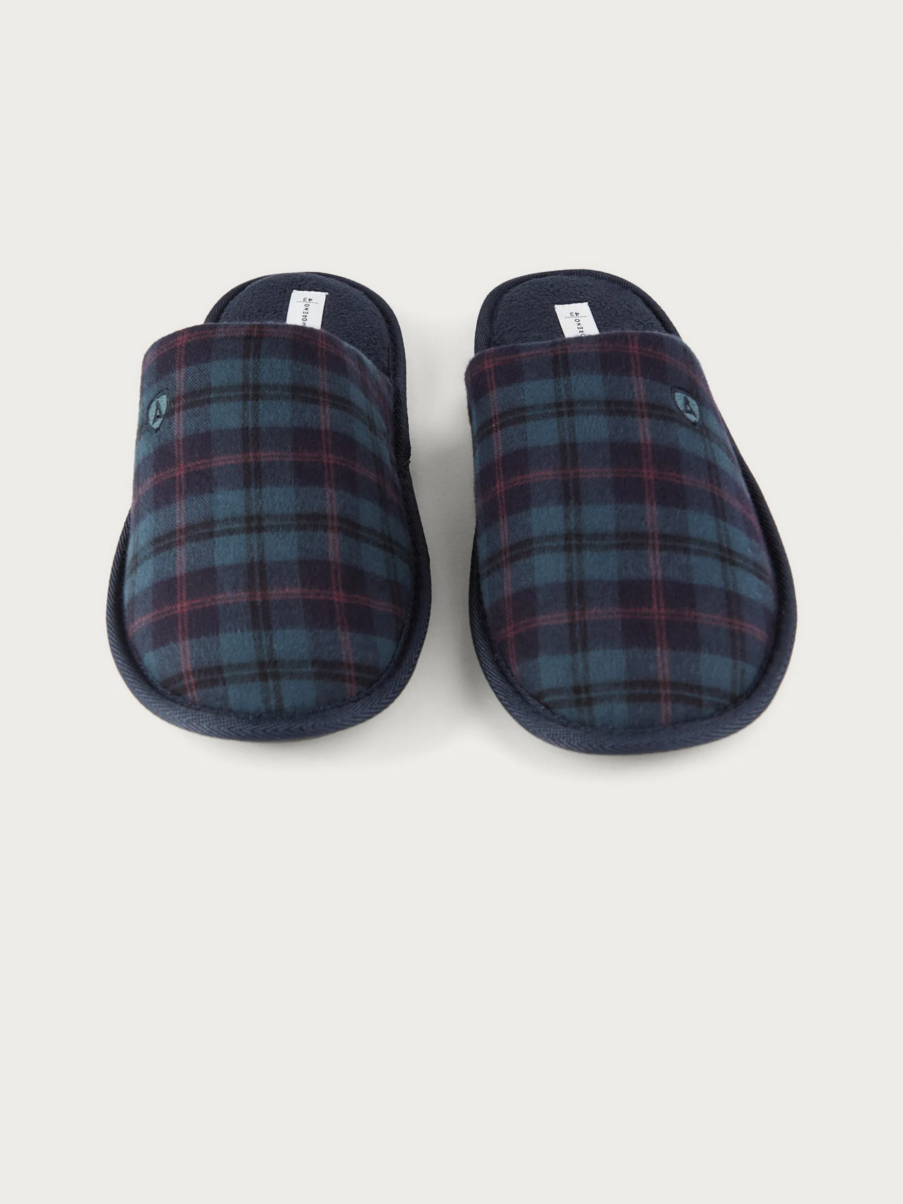 Zapatillas de estar por casa con diseño de cuadros en su exterior. Interior forrado en algodón aportando calidez y suela de goma.